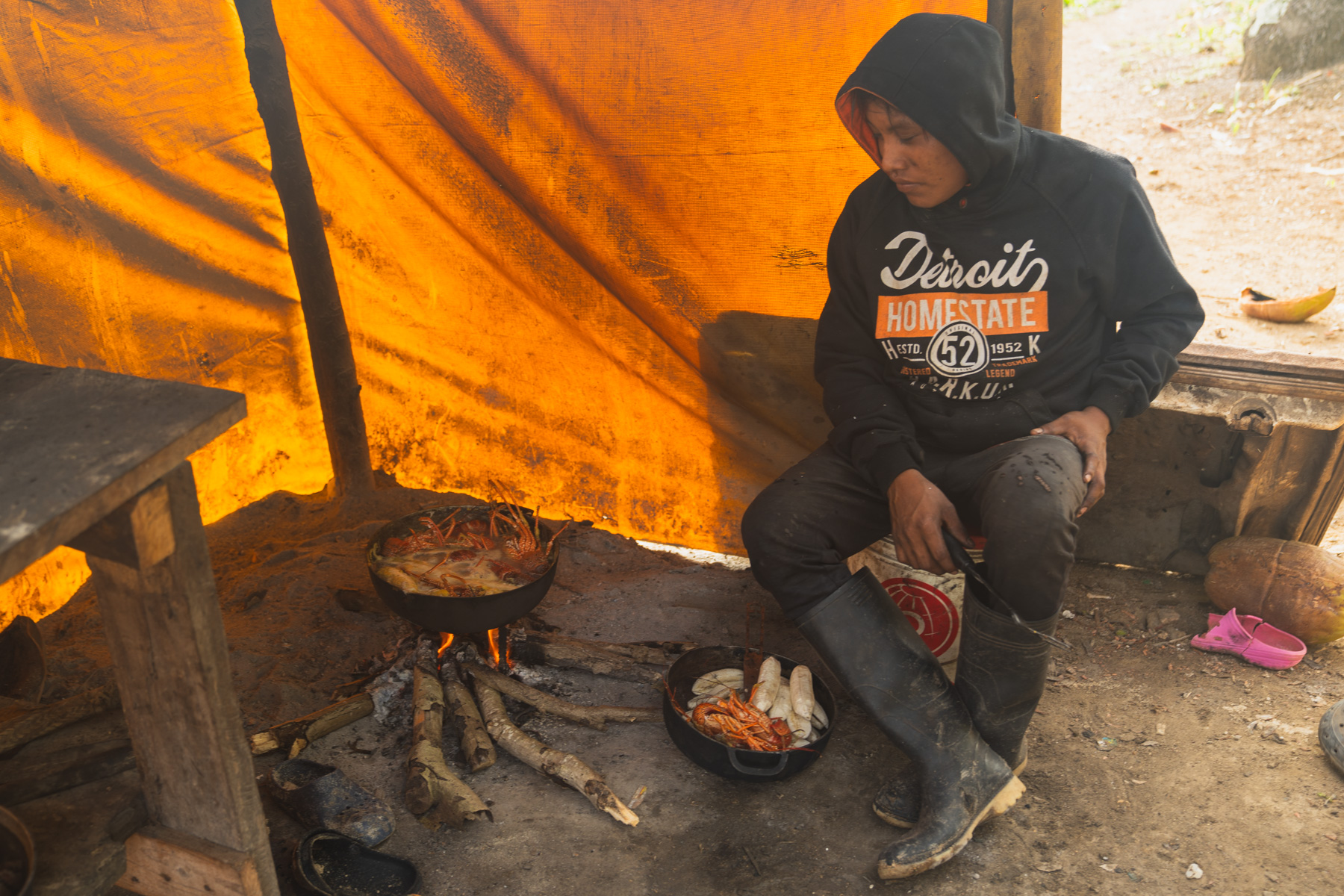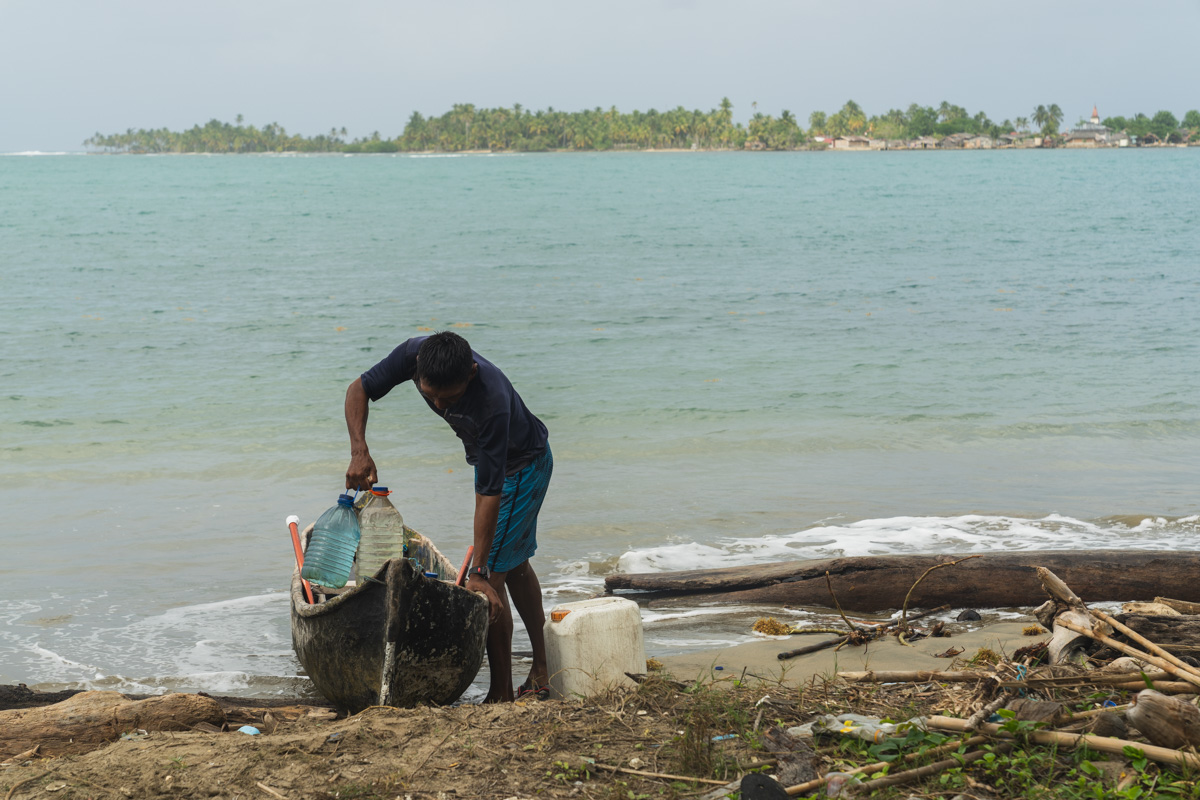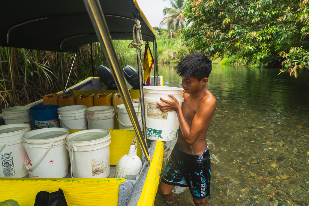 While Kacper rested, I was invited to join one of Marco’s sons, Juan, on a trip to refill their water from a nearby river. Living on an island comes with many challenges, and freshwater is one of them. Every few days, they need to drive up the river and fill all their containers. They use this water for drinking, cooking, and cleaning.