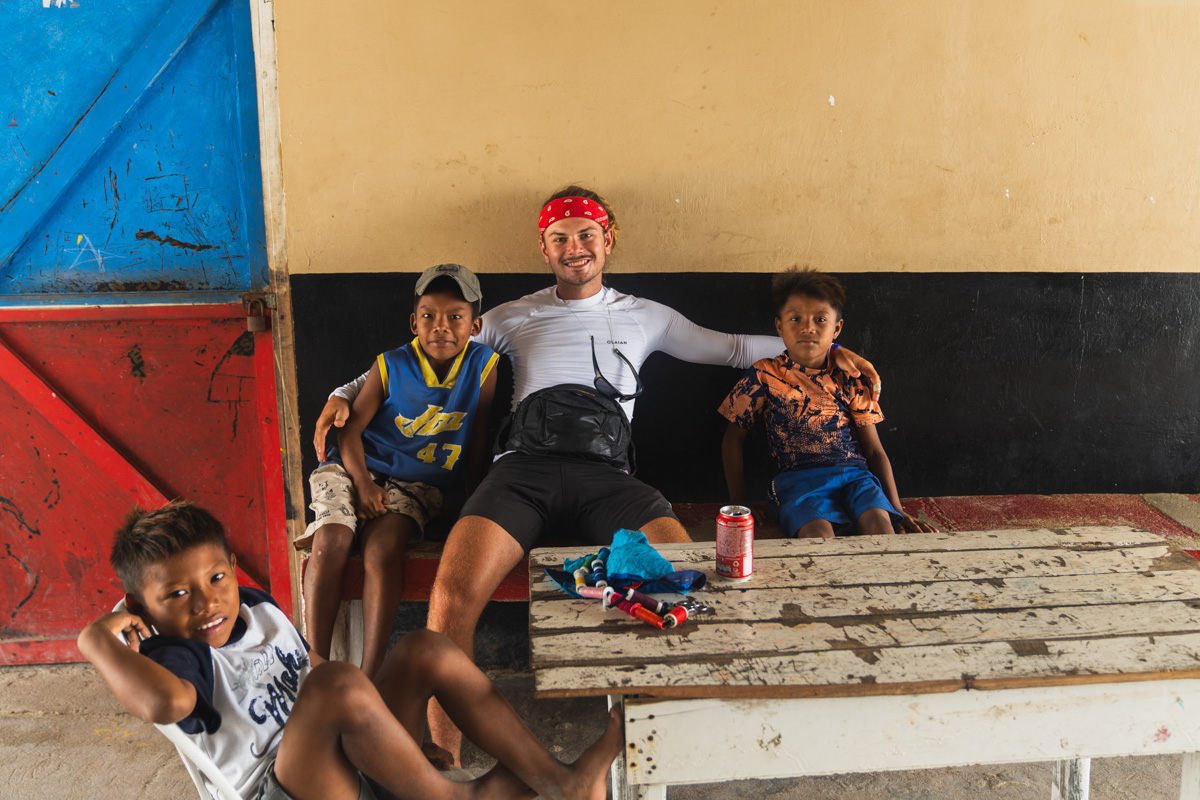After another few hours of paddling, we arrived on the island of Nargana, a very densely packed island that the communities of Rio Sidra and Marmadub lived on. We tied up our boats at the main dock and walked into the center and it was wild. There were so many people, with music and dancing and so much going on. Being the strange sights we are, we got a lot of attention and had kids following us around. It was a bit overwhelming at first. We found a place to sit down and order a plate of food while we talked and decided what to do. We wanted to stay here but needed first to find somewhere we could stay. We asked someone who then went running around town until they returned with a man named Marco. He said that we could stay with him in an extra room he had. He also asked us why we didn’t want to stay in some cabana on a pretty island somewhere. We explained our goals for traveling were different. We wanted to experience the lives and cultures of people around the world, and this was the best way of doing it.