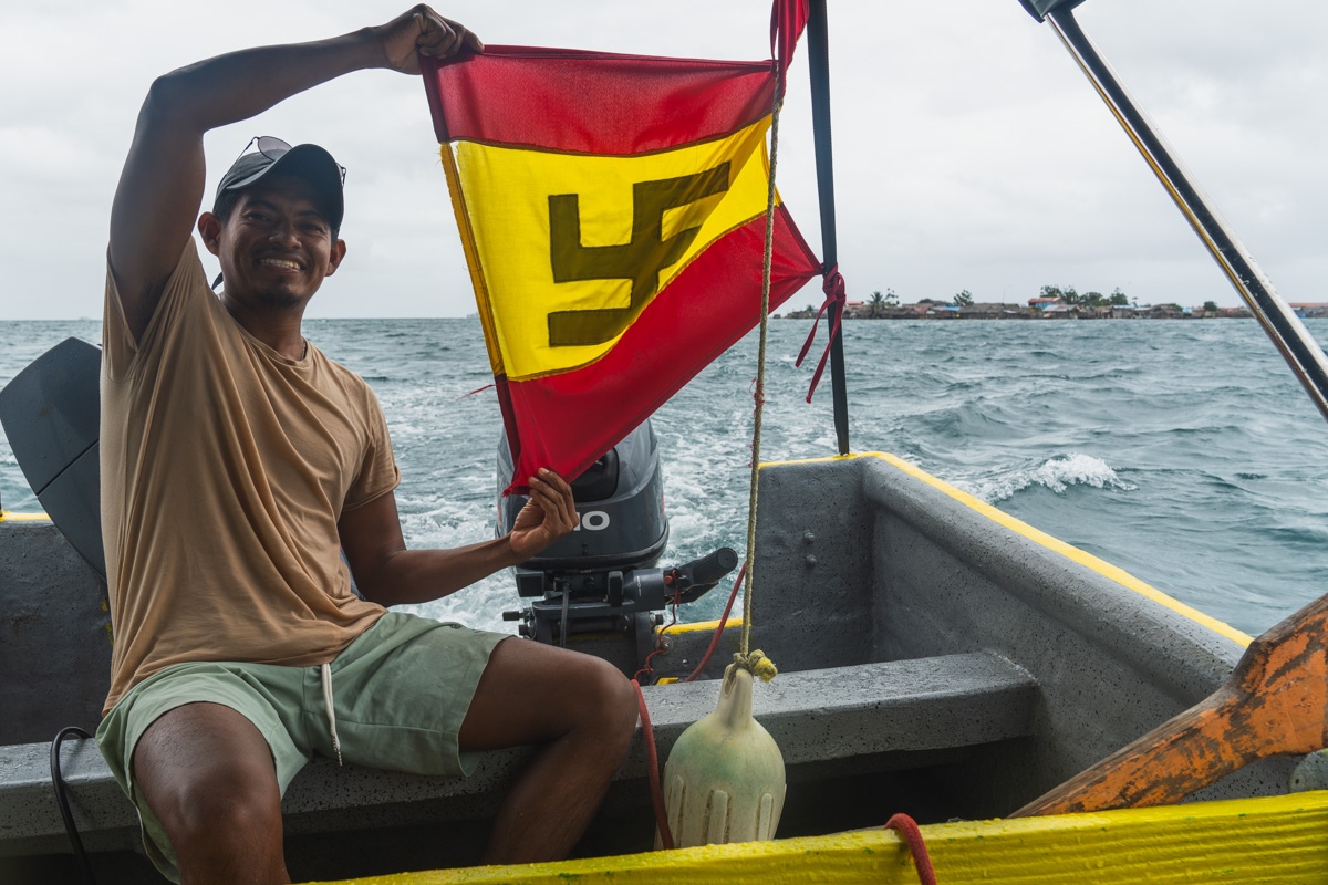 We parked our boats on some random beach and walked around to explore the island. I should make a quick note about the flag if you haven’t noticed. This is the original flag of Guna Yala, and yes, it is impossible not to think about the Nazi Swastica when you see it. The Guna adopted this flag in 1925, way before the Nazis adopted the symbol. This symbol has a deep history, with first known uses going all the way to B.C. times. It is seen in many different religions and cultures all over the world. It had a history of very positive meanings but now is connected to a sign of hate and racism.