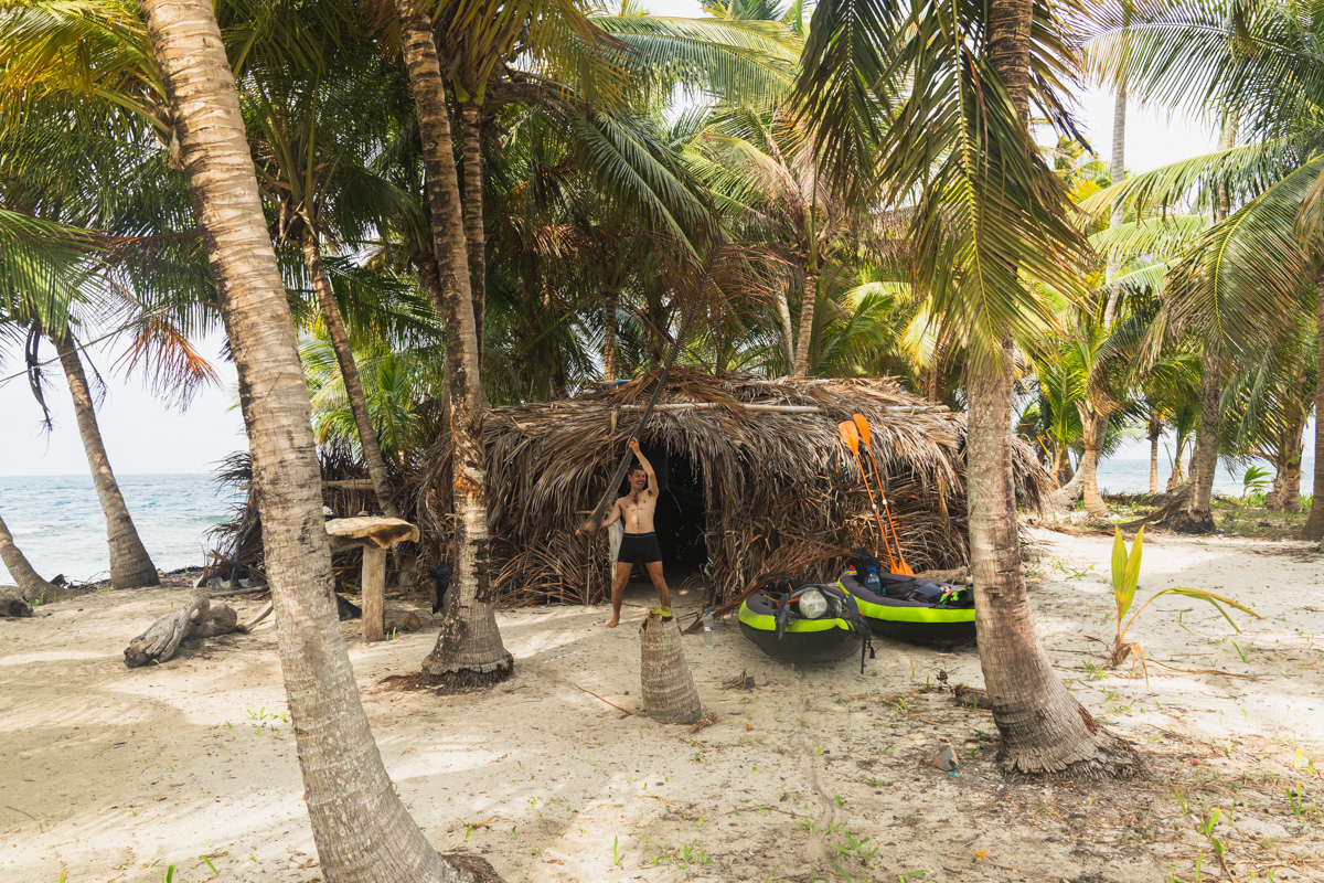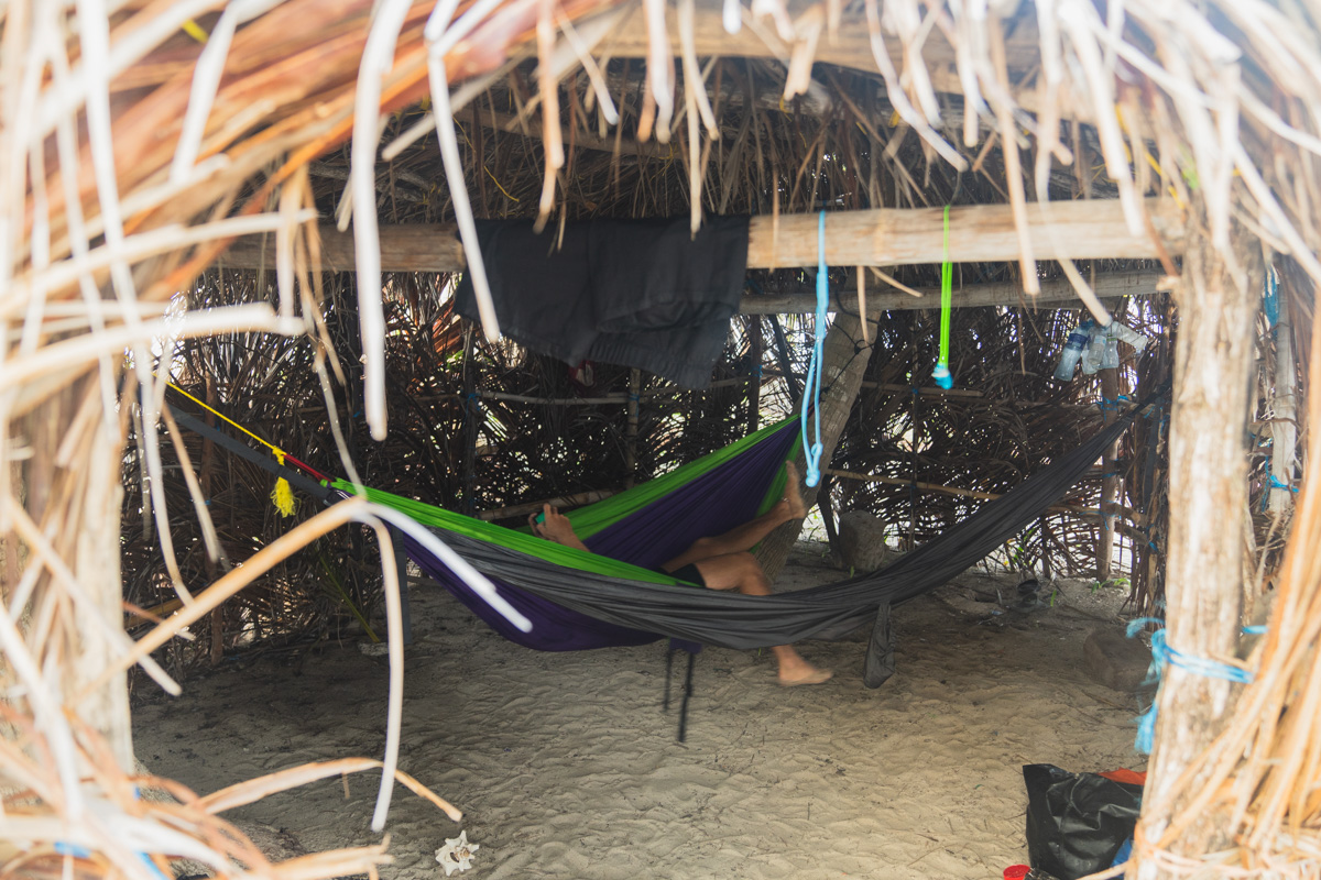 Someone had built a beautiful shelter from trees and palm leaves. It was still rather early in the day, but we decided this place was too perfect to leave. We set up our hammocks inside and got ready for an evening of relaxation.