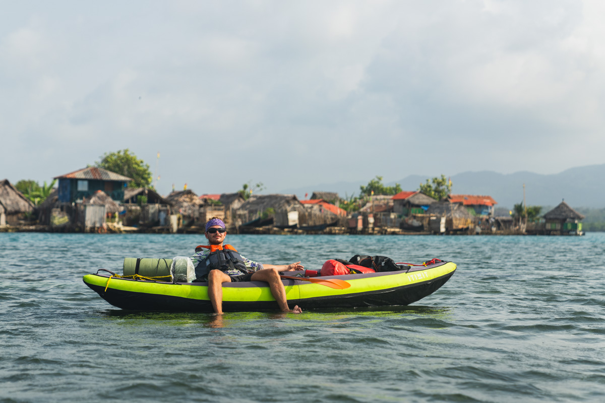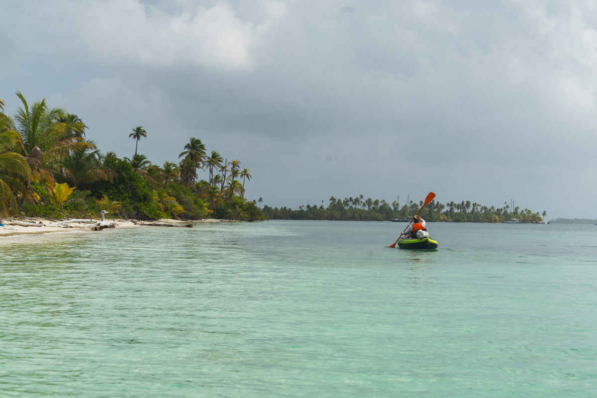 After paddling around 25km (16 miles), we arrived at the island of Aligandi. By now, we were very accustomed to this way of life, and paddling for 7 hours in the ocean was no problem. I think we would usually average around 4 km/hr, which wasn’t too bad. Our kayaks were big and inflatable, so we were a bit slower.