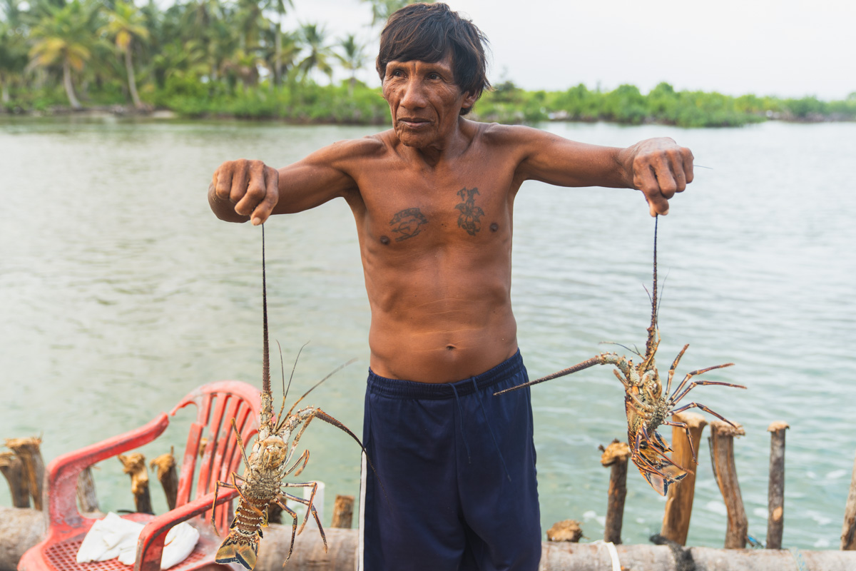 While taking a midday rest on an island, we noticed a group of Gunas spearfishing in the reefs in front of us. We wanted to try and buy a fish off of them so we called them over. In their boat, they had many different types of fish, langostino, crab, and octopus. They said they had only been fishing a few hours and had already caught all of that.