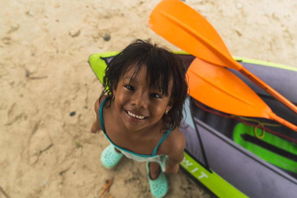 After the rough section, we had a pretty calm paddle to the island of Ticantiqui. Within a few minutes of tying up our boats at the main dock, we met Tarsi. Before we could even ask, Tarsi offered to find us a place to sleep. He found us a palapa on a beach behind the chief’s house where we could stay.