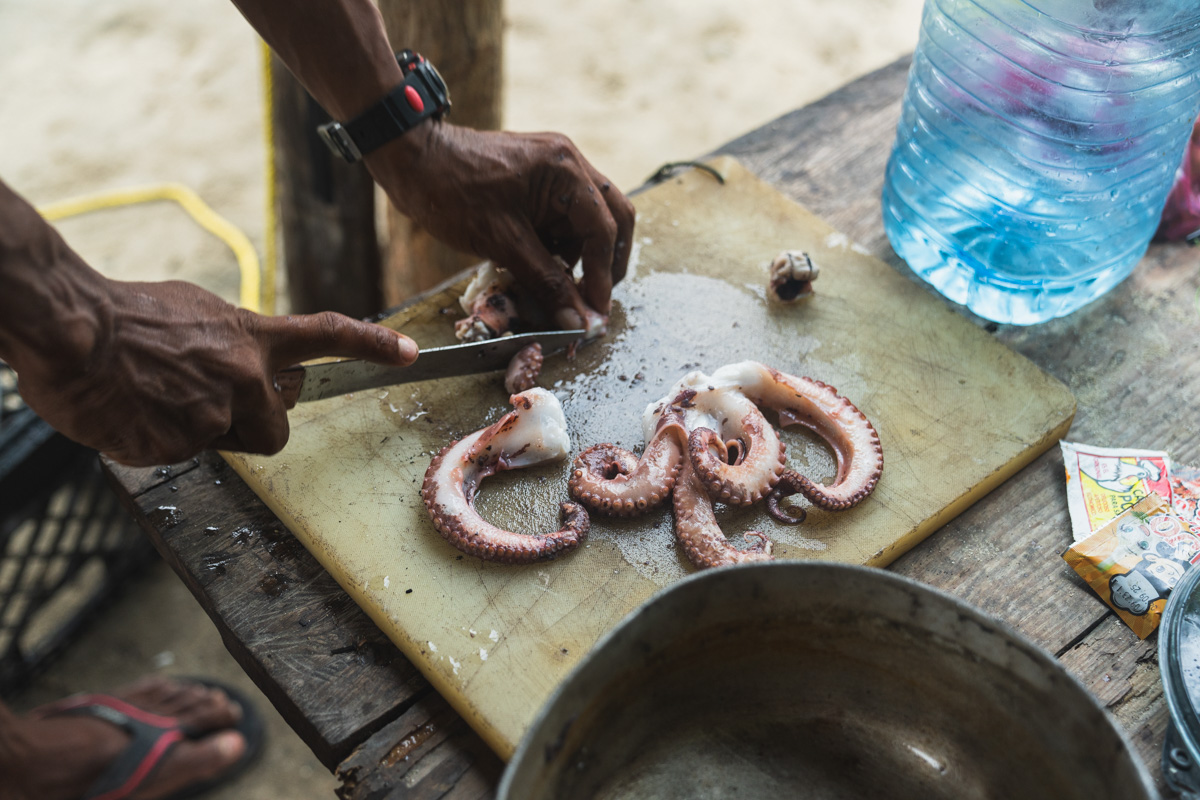 We visited the fisherman again for some dinner. This time he had a pulpo that we bought from him. We had no idea how to prepare it, but thankfully Tarsi was able to show us how.