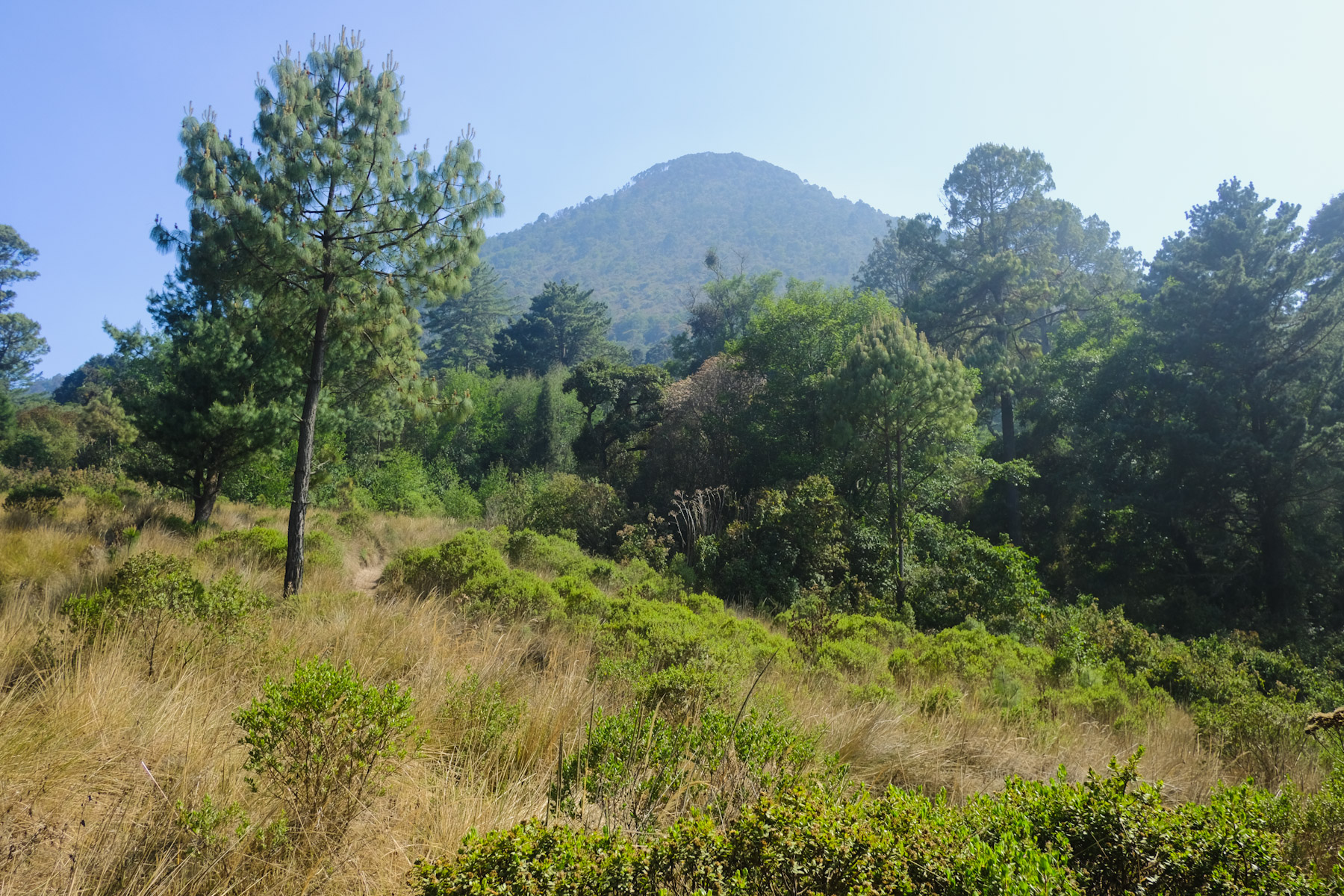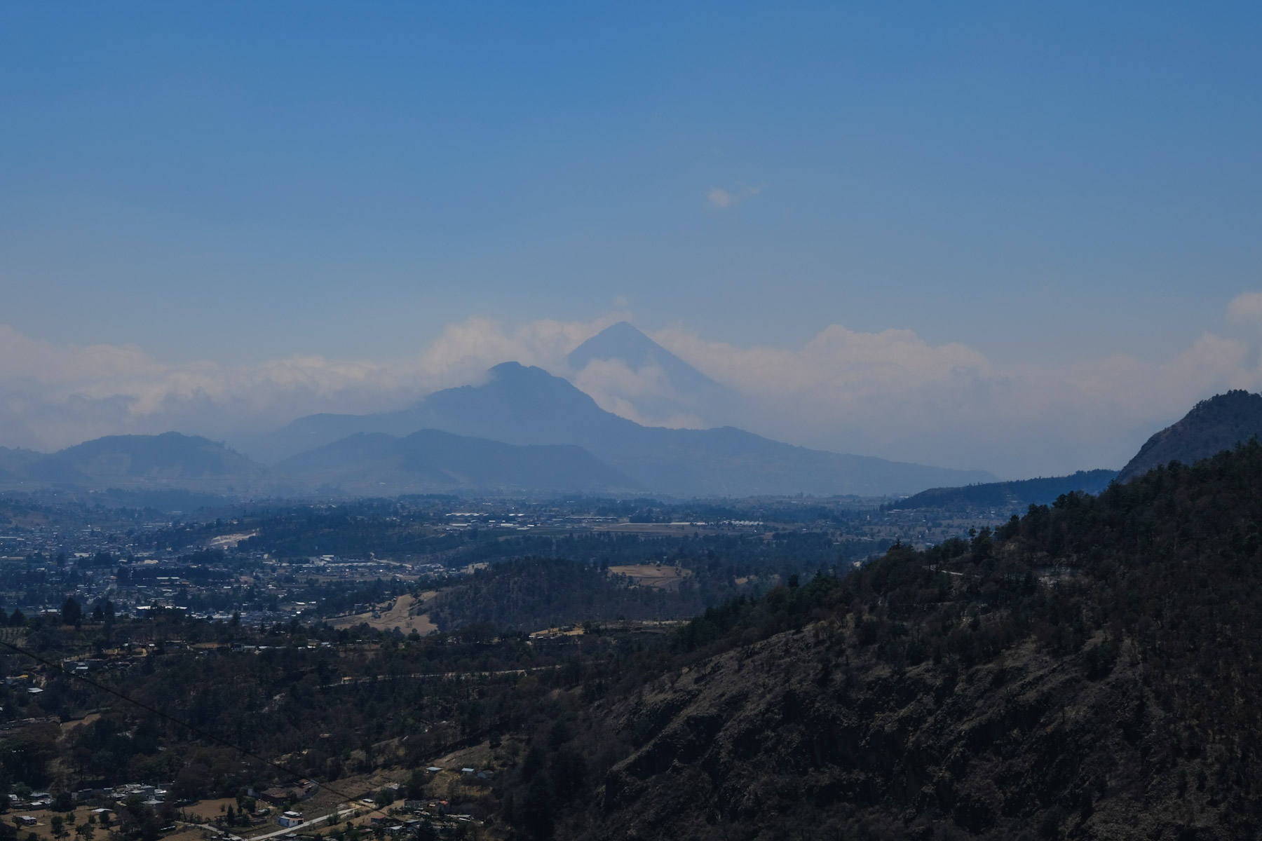 One of my favorite things about being up on top of a volcano is that you can see so many other volcanoes as well. Here on the far horizon on the left, you can see Agua, Acatenengo, and Fuego. Fuego is world known because it is one of the few active volcanoes and it constantly is erupting lava. You can see in this photo some smoking coming out of the top also.