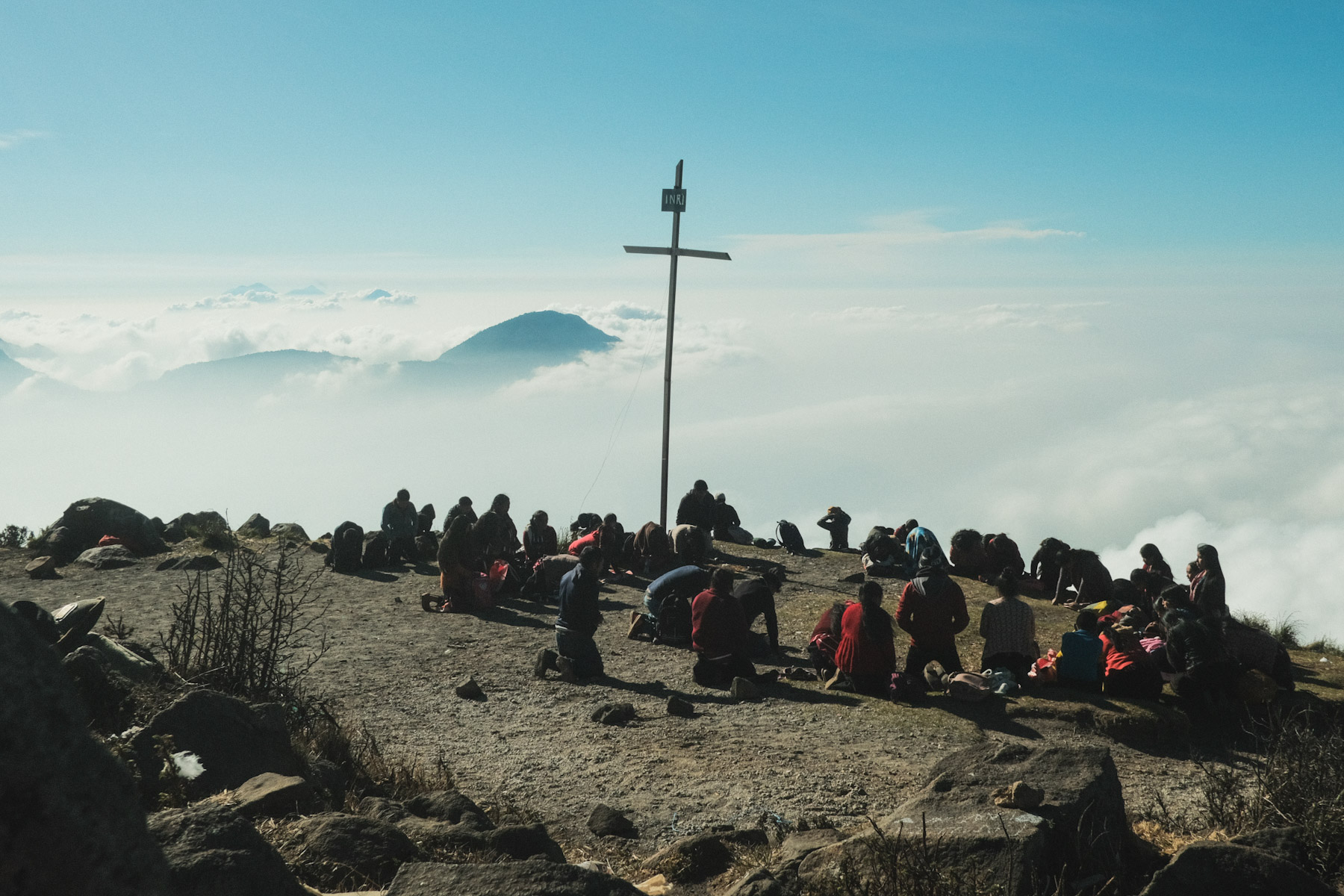 By this time I was far from alone on the summit. Since around 5am, more and more people came up to enjoy the view. I was able to witness a cool religious prayer from a group as well. I saw tons of local women hiking up this volcano in their traditional clothes and shoes and it was very impressive. It’s a tough and challenging hike and these tough women are climbing it in shoes that look extremely uncomfortable and painful but yet they do it all the time.