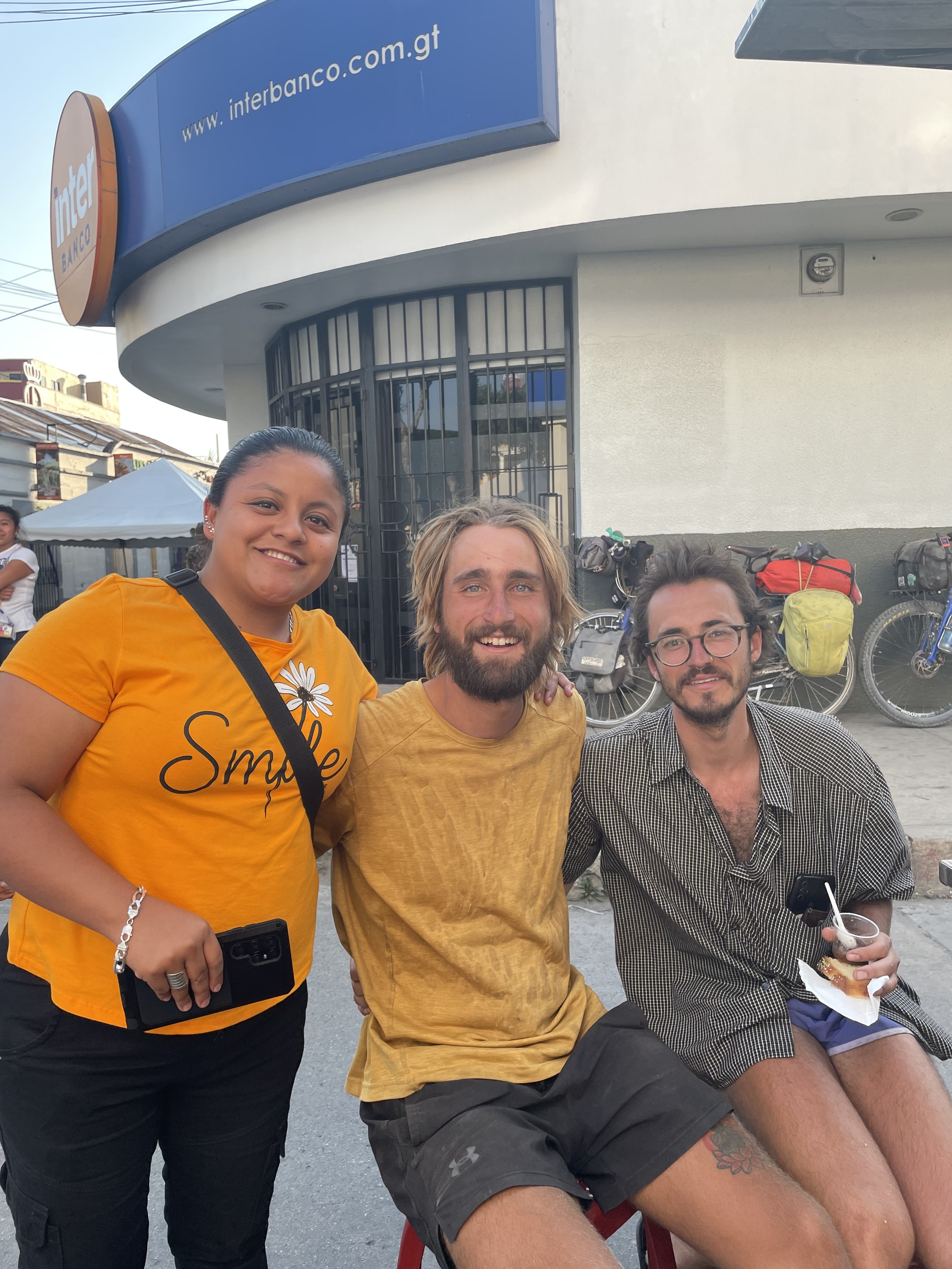 Here a small group of locals stopped and talked to us. Everyone has been ridiculously friendly here in Guatemala so far. I thought people were nice in Mexico but the people of Guatemala loved talking and getting to know us. This lovely lady gave us a couple of Guatemalan treats for free :).