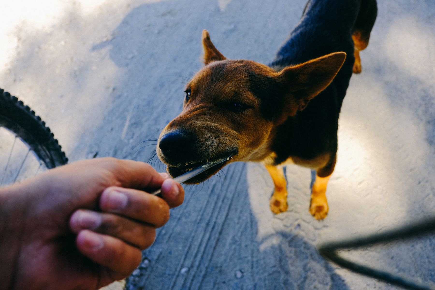 On the road this little pup followed me as soon as he saw me. I had to stop and then I fed him about half a tub of peanut butter and the rest of my tortillas. He clearly had never had a spoon of peanut butter before because instead of licking the peanut butter, he would bite the whole spoon at once haha.