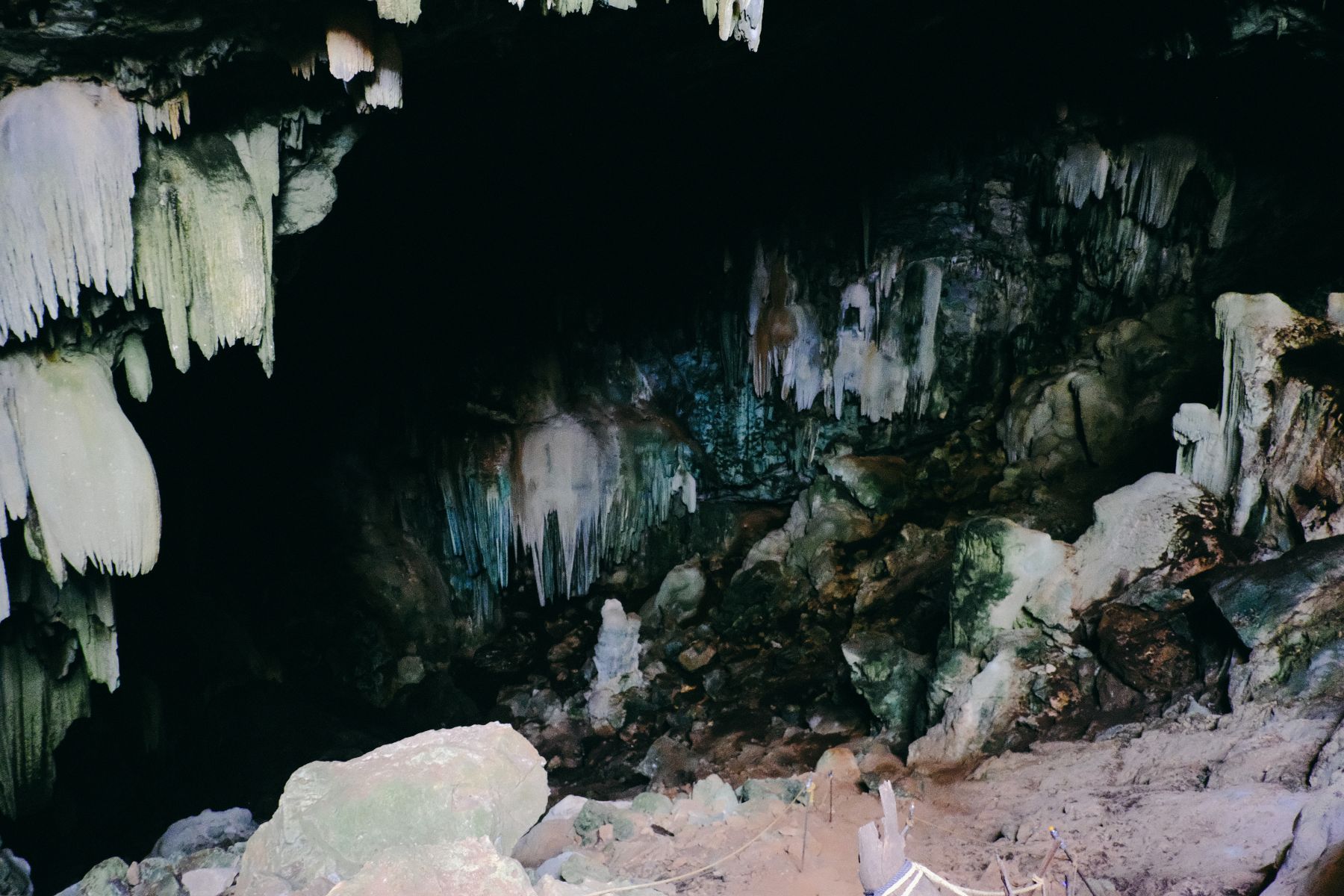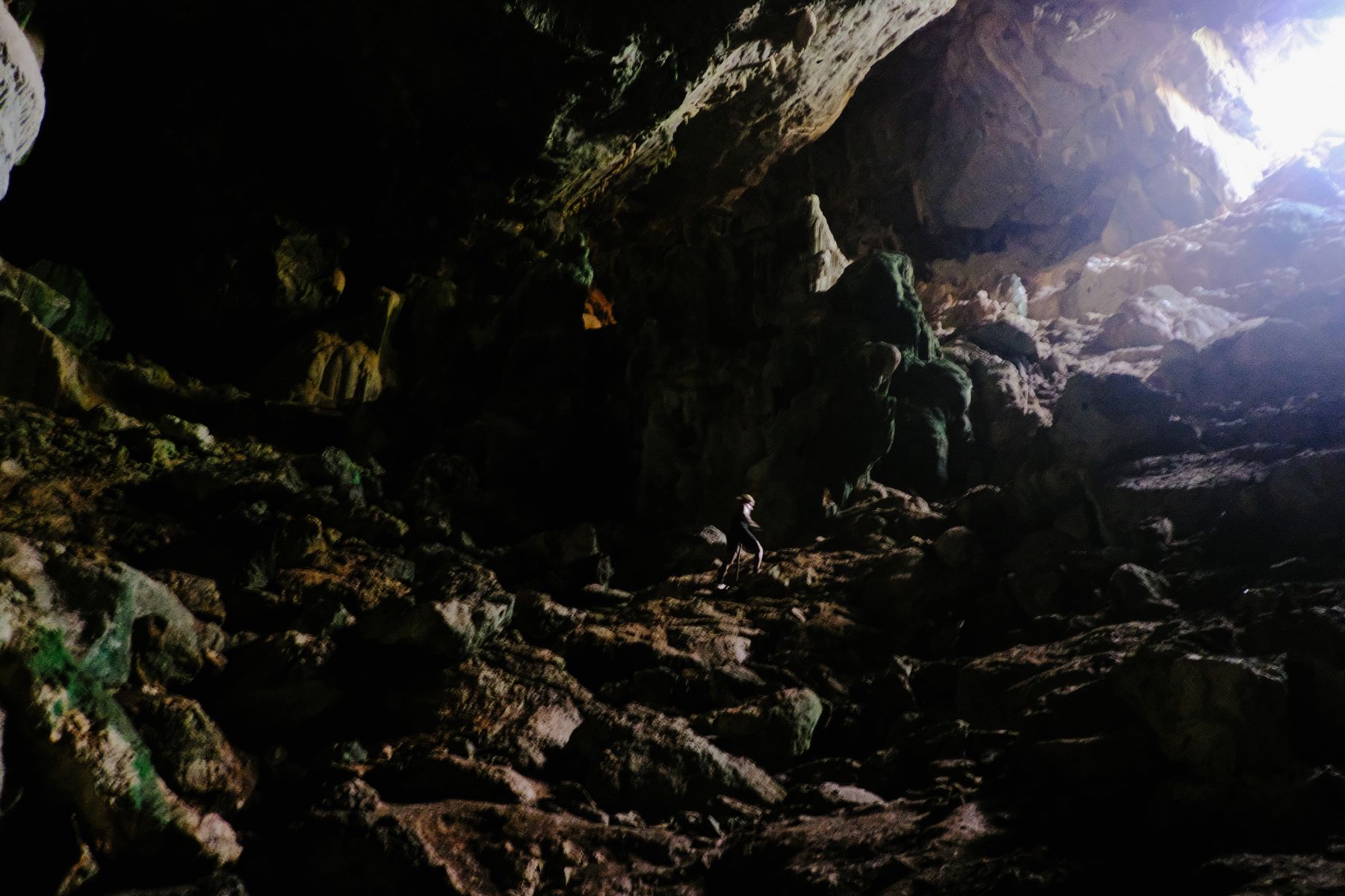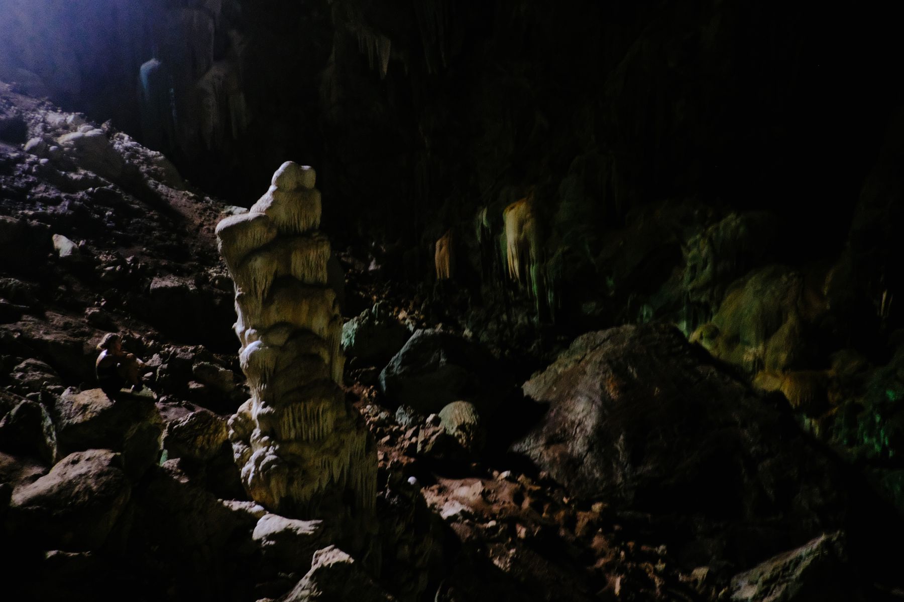 Zoe next to some mineral tower. As we went deeper into the cave it only made the cave feel bigger and deeper.