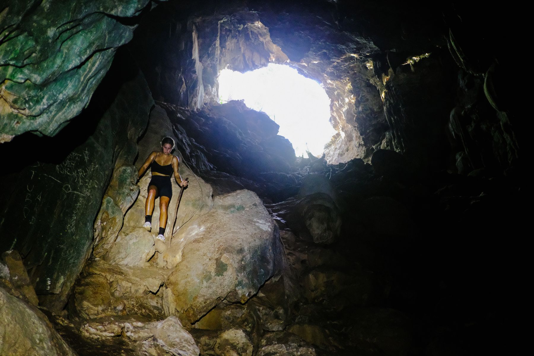 Hiking down into the cave.
