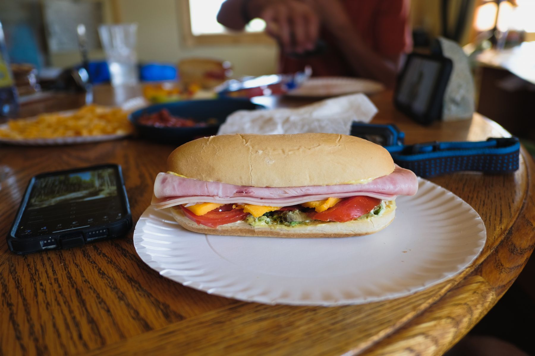 When Brian and Kathy returned, he started cooking up a delicious dinner. It was some mix of chicken, rice, vegetables, and some wonderful seasonings and spices. We sat and ate dinner and had a lovely conversation. He had cooked a ton and gave me all the leftovers to take with me which would feed me dinners for the next two days. Along with that he loaded me up on peanut M&M’s (my favorite) and a couple other candy bars.