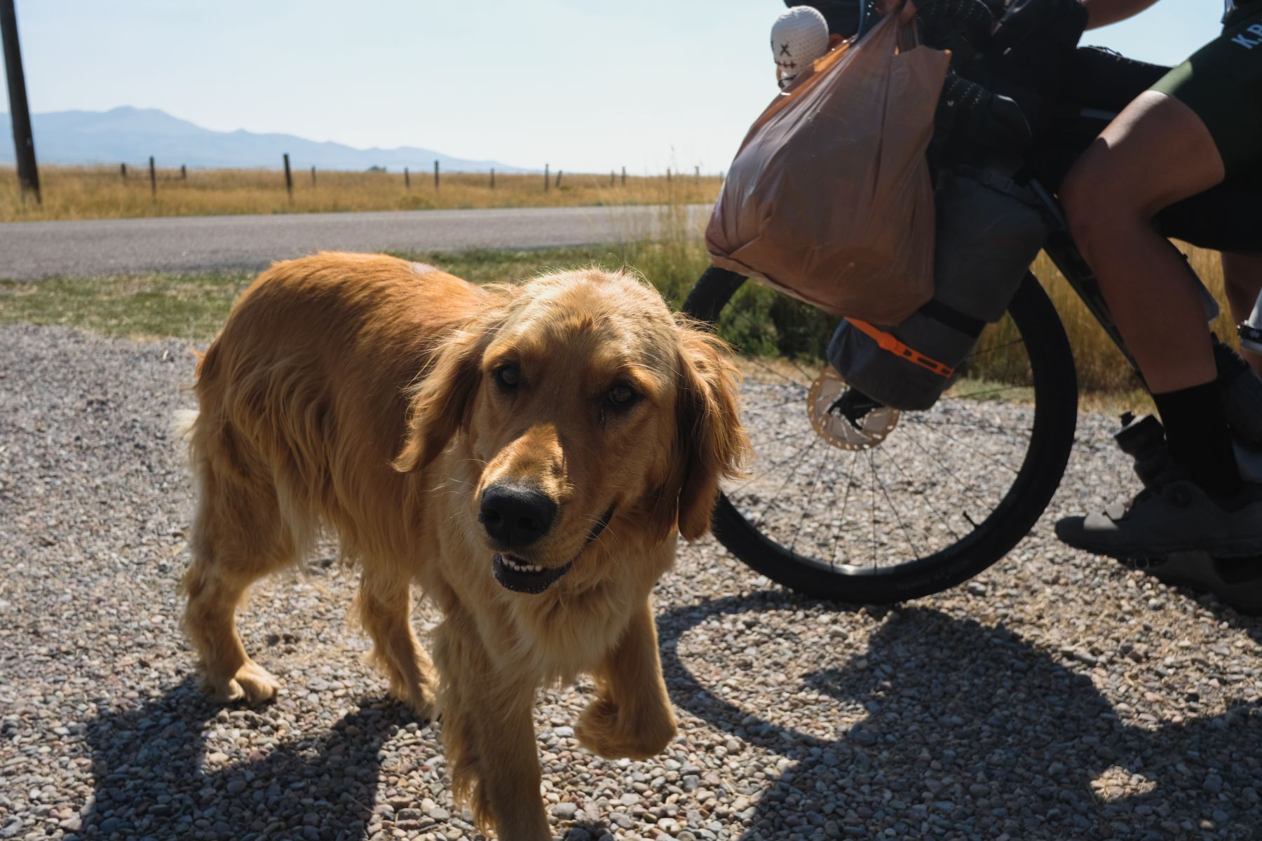 Seth and I were riding together from Dillon through the Centennial Valley for a few days together. He was going to head to Yellowstone after and I was heading south towards Salt Lake City. Seth is huge cyclist also and even holds some titles for cyclocross back in his home in California. It was great teaming up and riding with him as he is also a big lover of animals. We were riding and this lovable golden ran out into the street to welcome us.