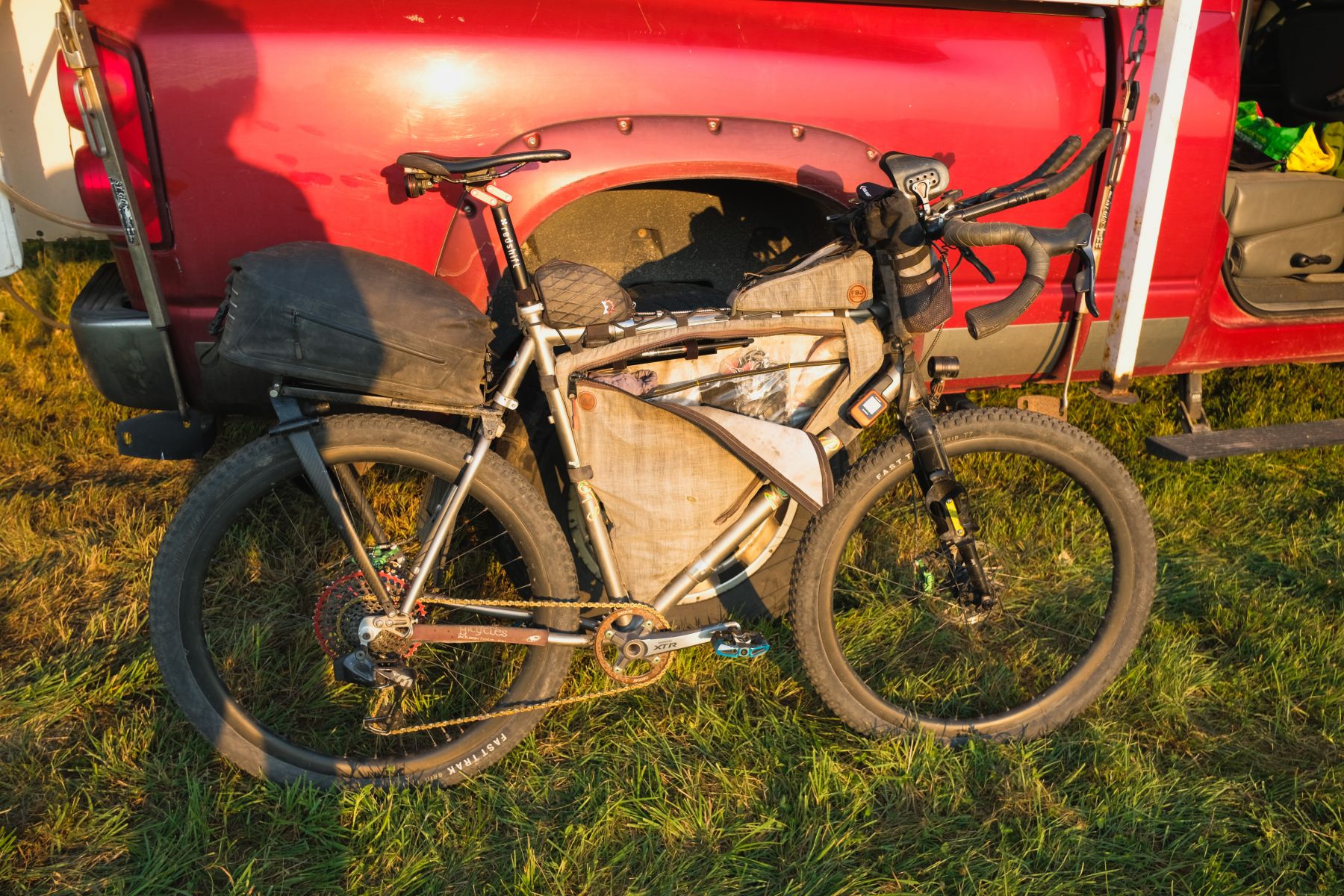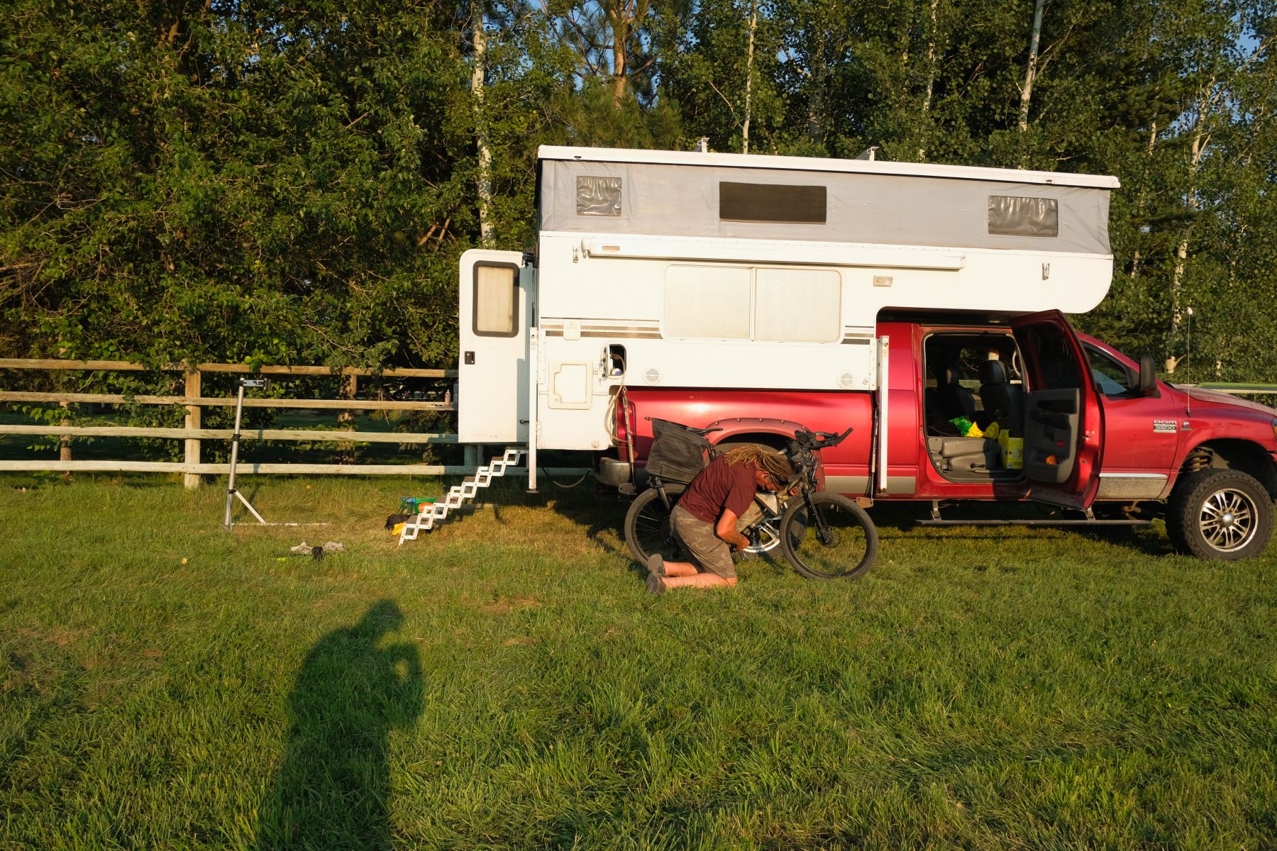 I was staying with a WarmShowers host in Idaho Falls and he was hosting a bunch of cyclists who were taking off on a race early in the morning. It was a great experience as I got to meet loads of other cyclists. This here is Brian who is working on his Moots bike before the race.