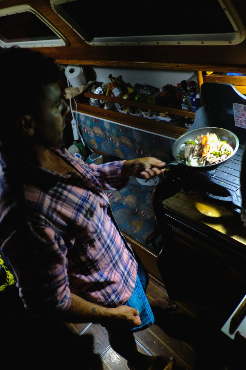 Mike was making dinner this night. I cooked most of the time since I was eager to make myself useful on the boat. Dylan helped cook too and was a huge help with all the sailing since he had a lot of experience.