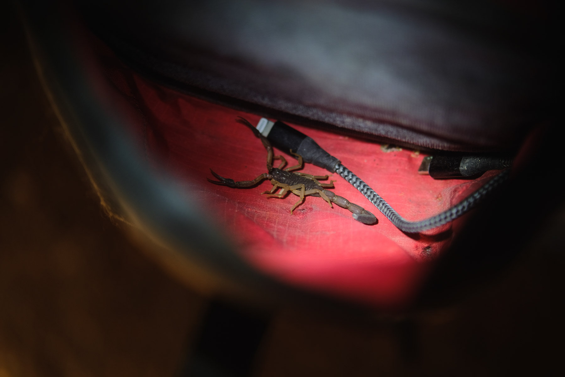 The next morning I had an uninvited guest staying in my bike bag. Thankfully I saw him before I reached in.
