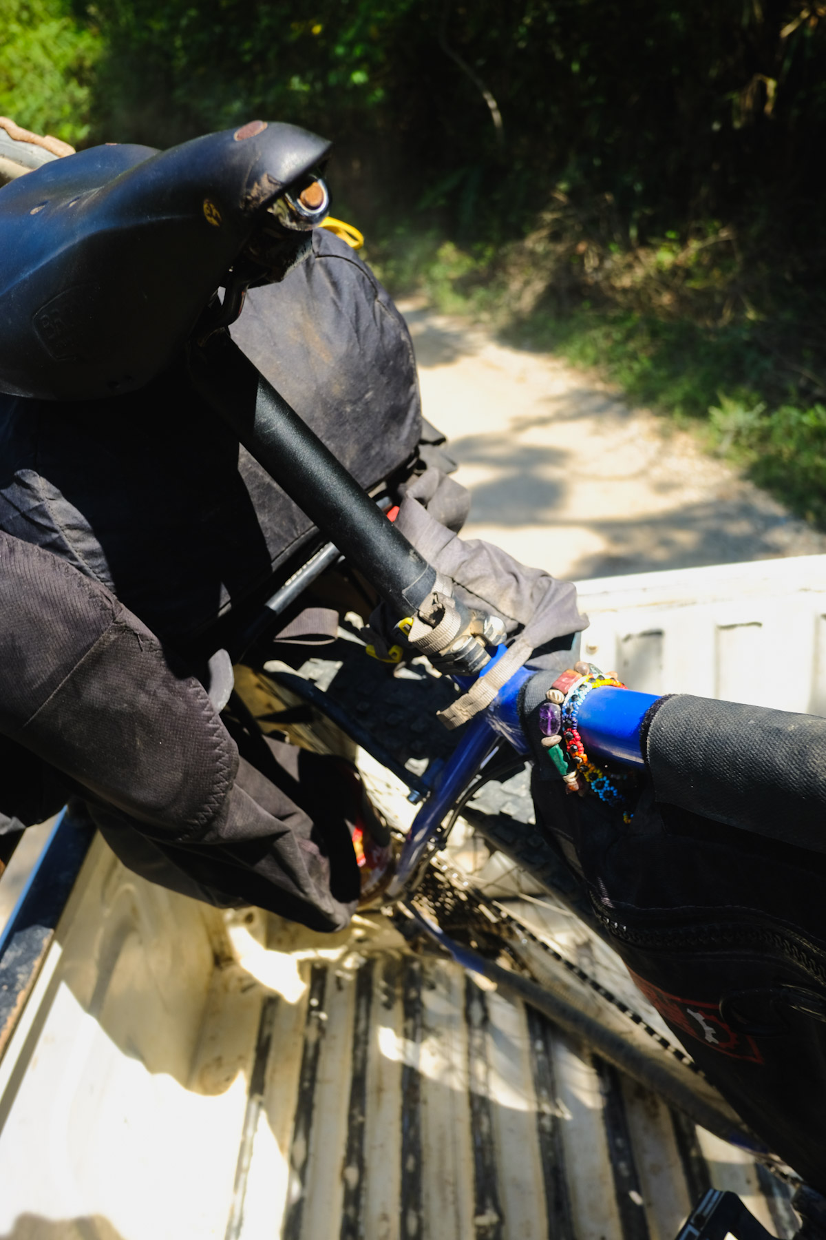 John’s bike with a little bit of mud on it. It felt great to be done with dirt roads and be on a paved highway for the rest of the day.