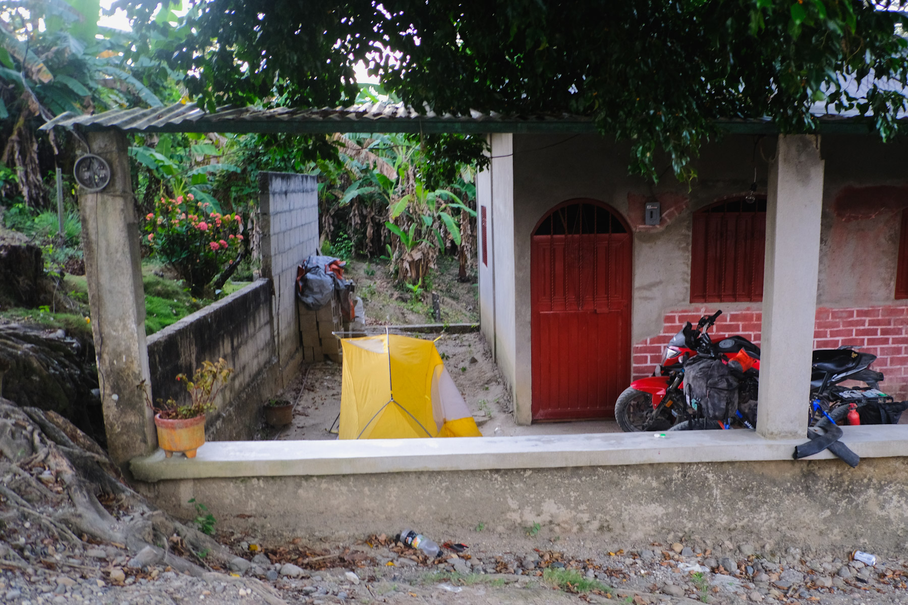 While I was setting up my tent the son came by and brought me some tamales and coffee. Then the son went over nearby and pulled a fresh pineapple out of the ground and cut it up for us to share. It was absolutely delicious and so so kind. All of the food, the corn, pineapple, and the coffee was all grown from their farm around my campsite.