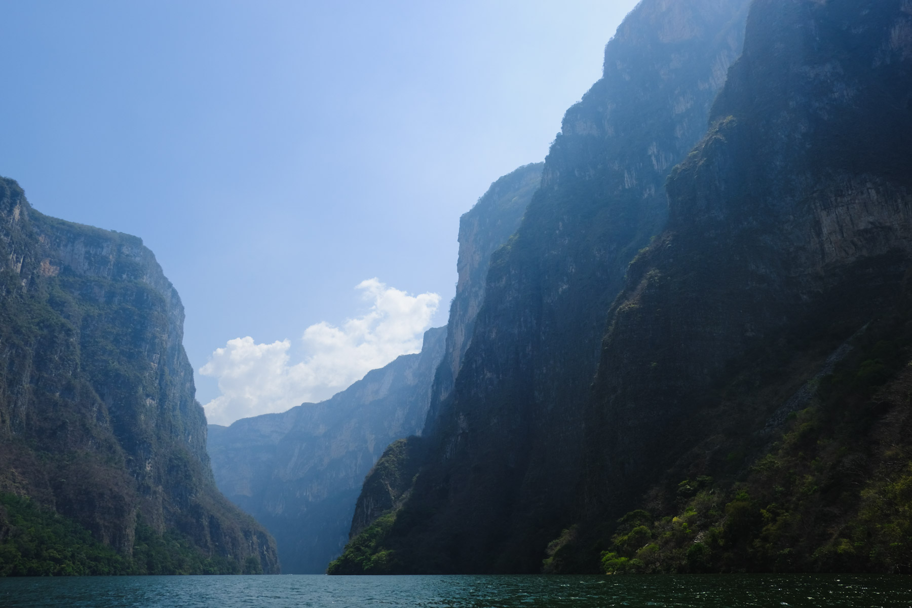 It is a river through some massive canons on both sides. These photos hardly do the scale of them justice.
