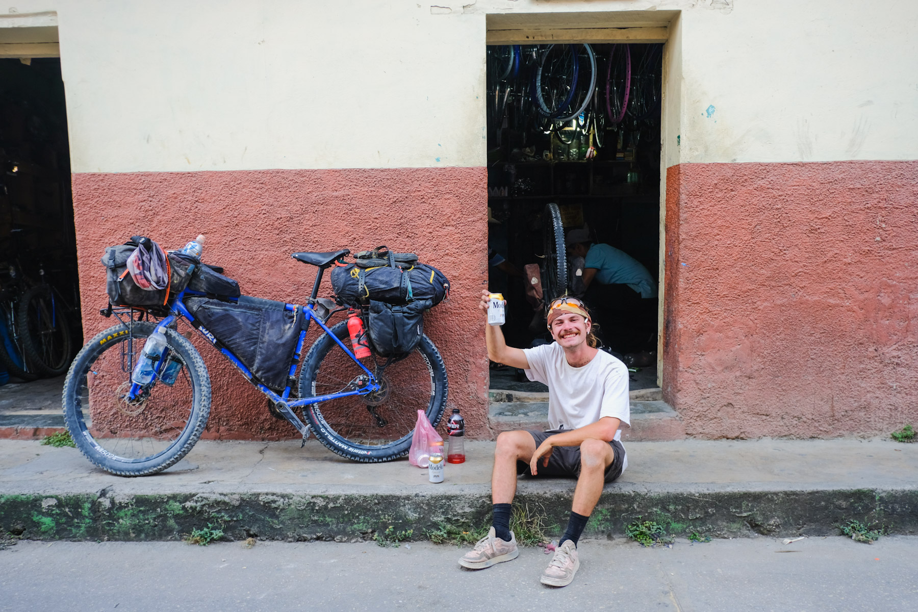 We hangout with some beers while they perform surgery on his bike. It’s hard to know what they are doing to his bike but we hear a lot of drilling and power tools.