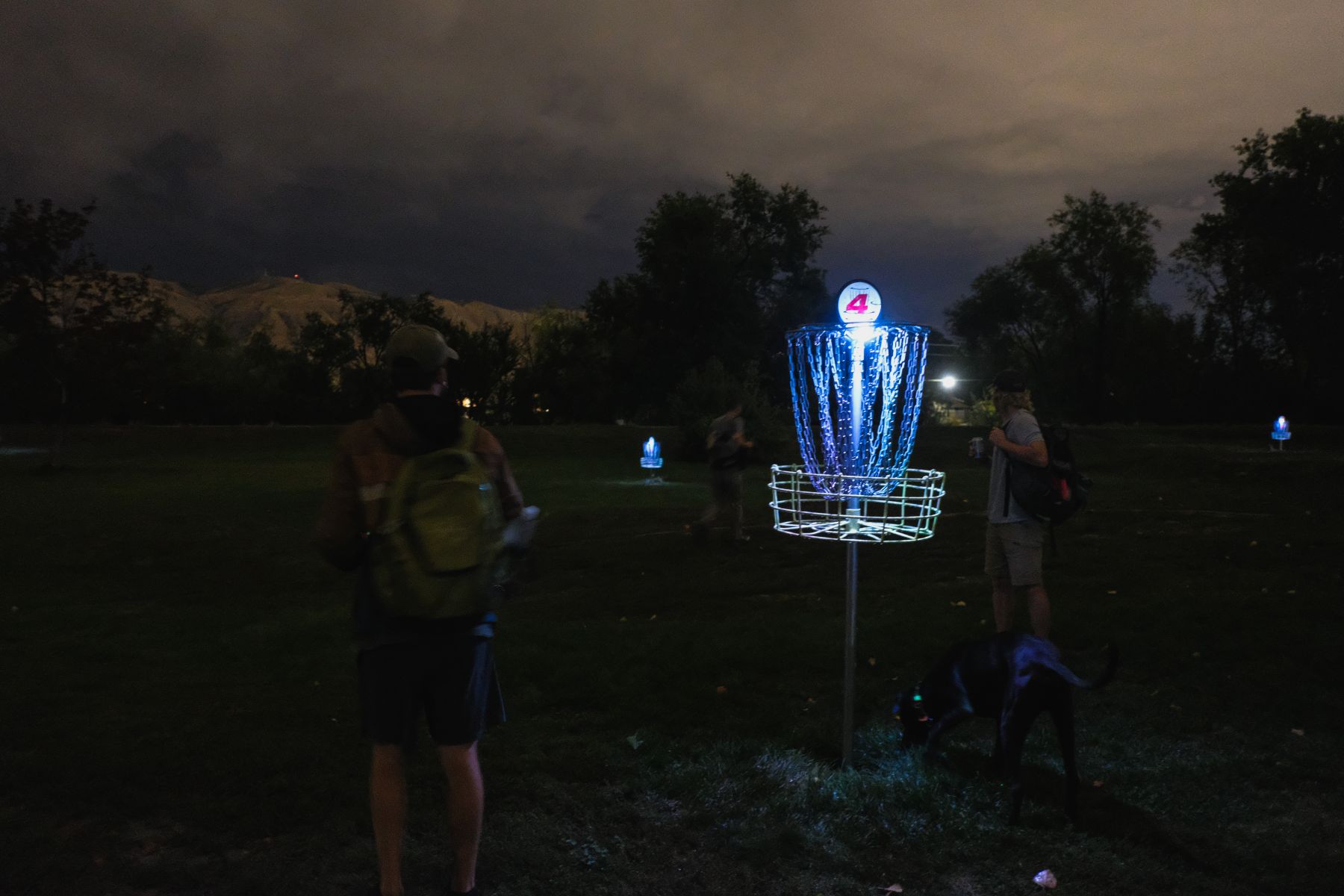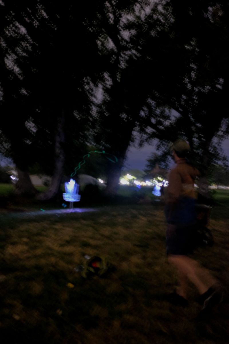 Gerrit was playing some disc golf with some buddies the night I arrived so I tagged along. They were playing a glow round at night so they put lights on all the holes and put some glow in the dark tape on the discs.