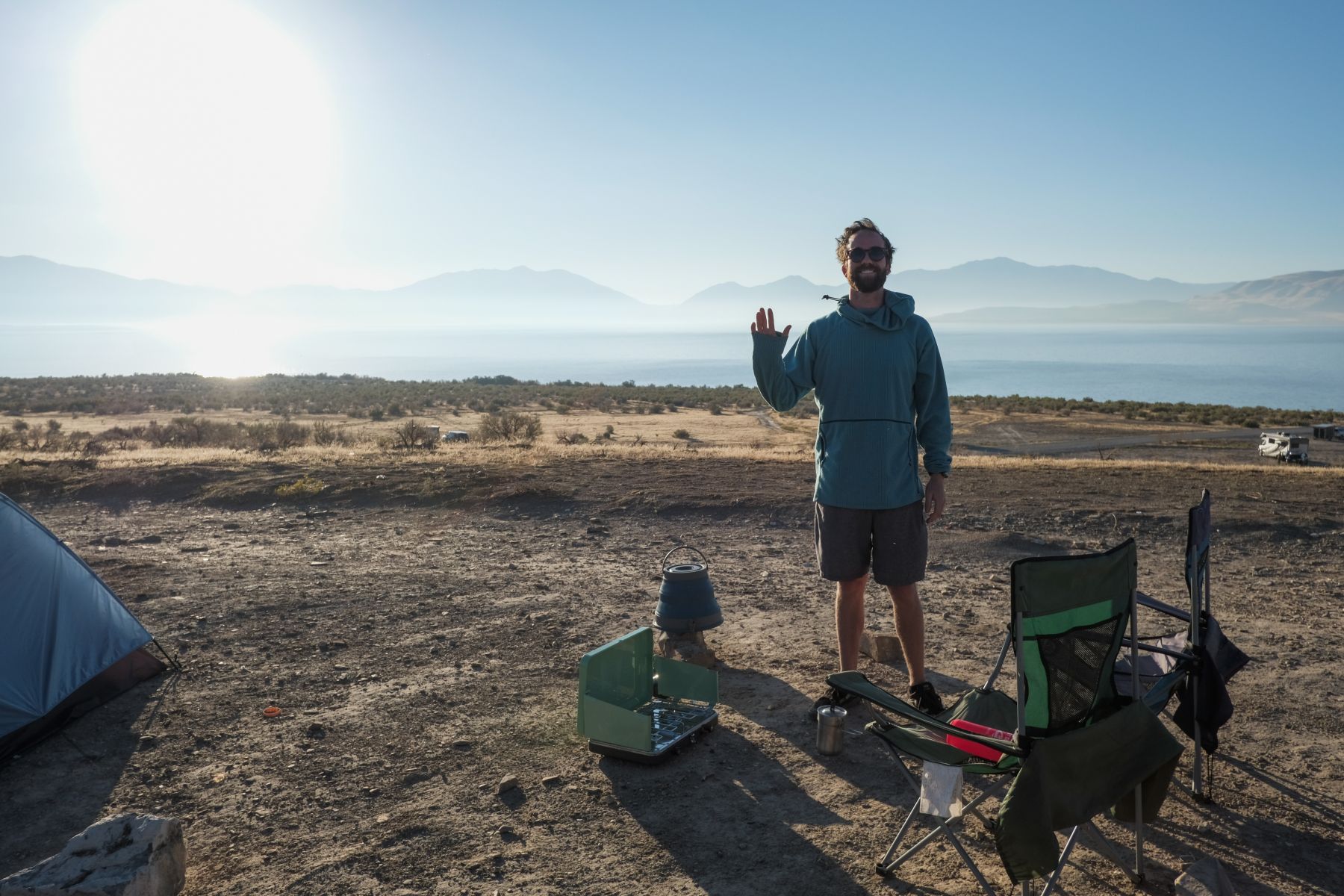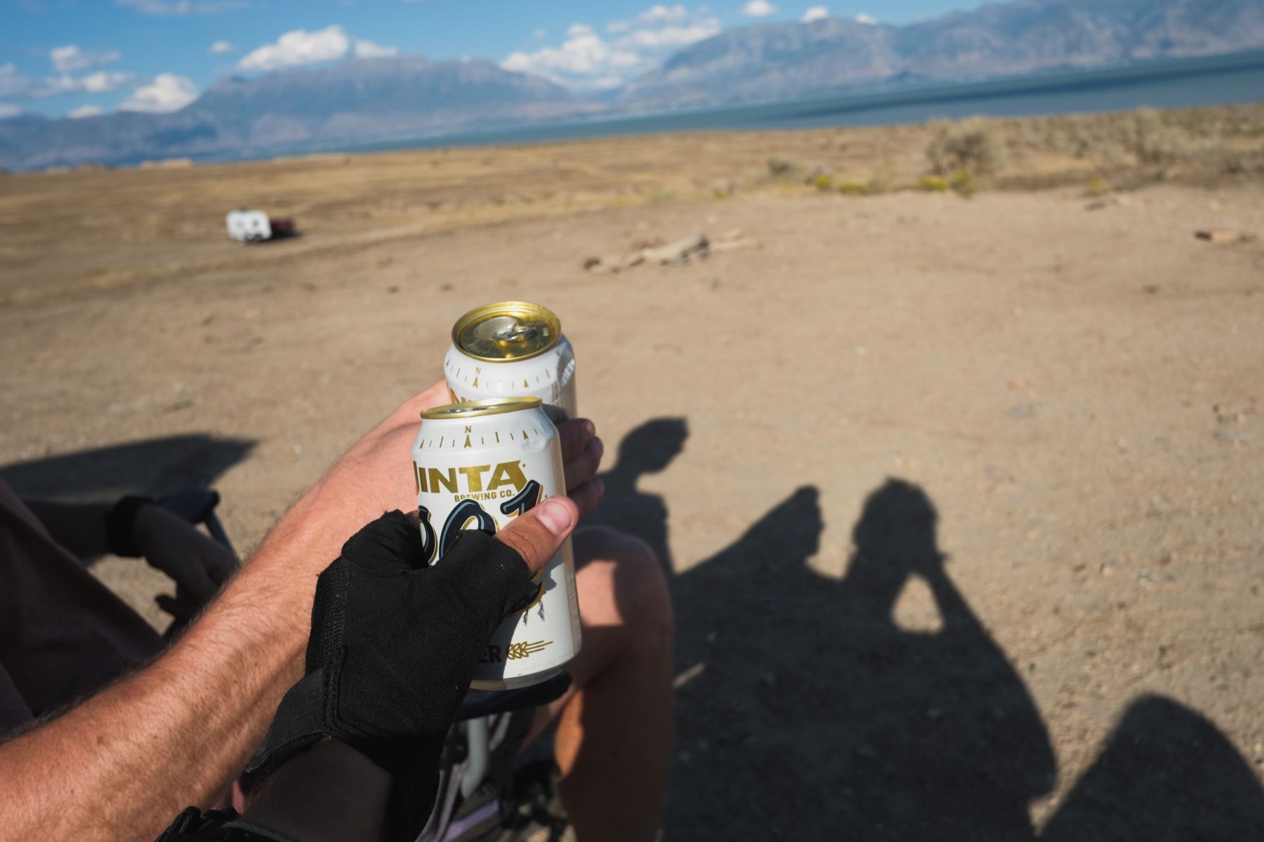 Gerrit wanted to ride and camp with me for the first day leaving the city. The day before we had dropped his car off down at the campsite on Utah Lake. We had the car loaded with his camp gear and of course, a cooler full of beer.