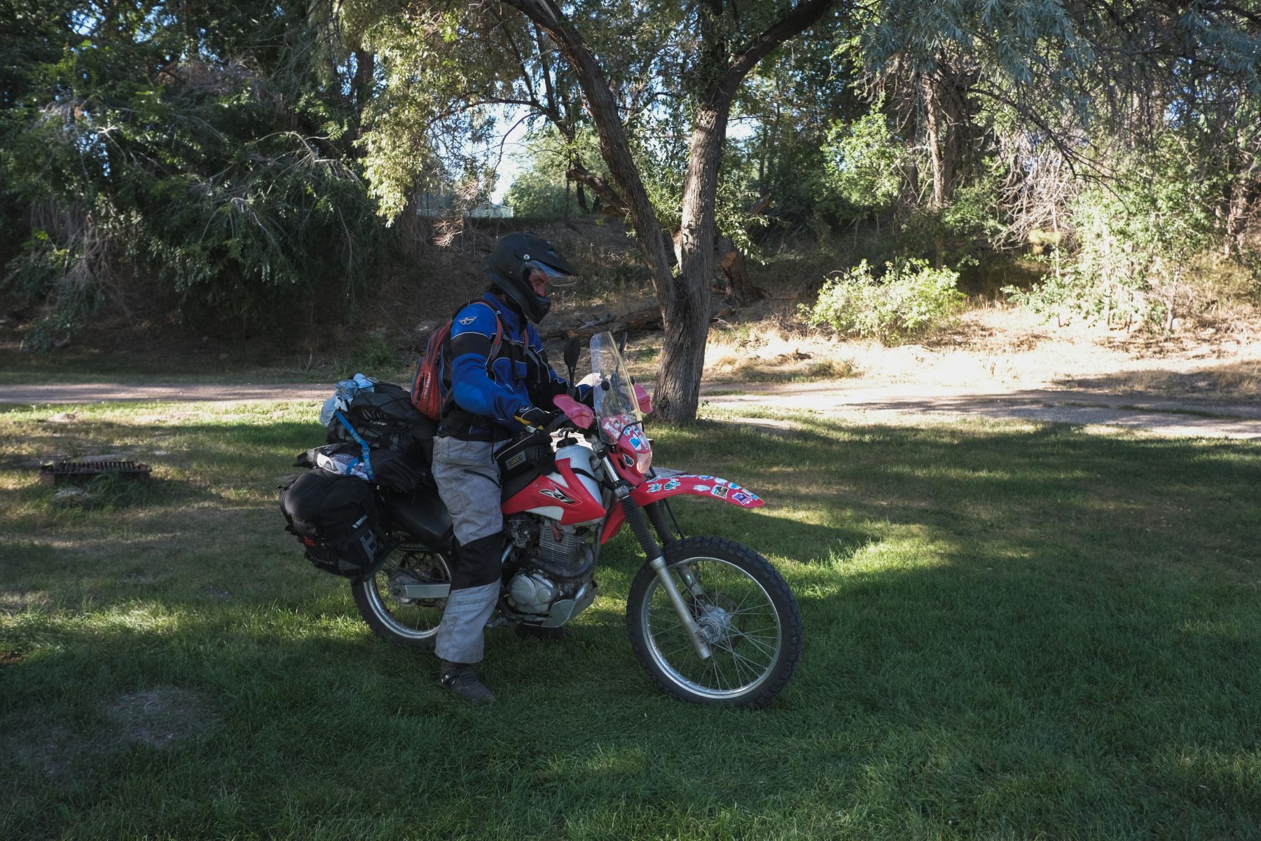 We had a great night getting drunk around the fire. The morning was beautiful but sadly it was time for us to part ways. He loaded me up with snacks and food and headed back to the city while I continued riding south.