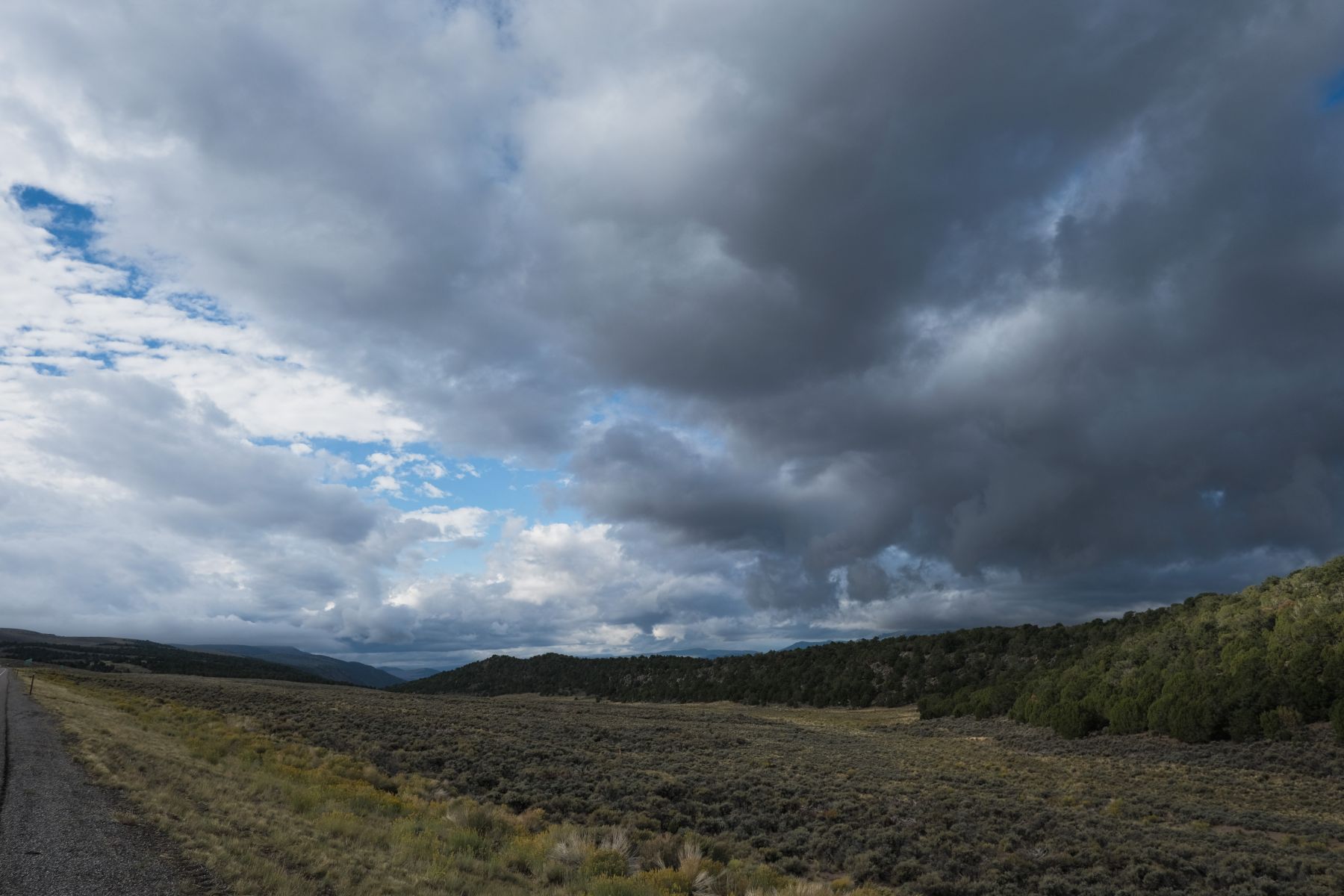The next day some spooky clouds started to roll in. I would be fighting headwinds all day and also have some light rain showers off an on. I was making my way towards Torrey, a town just outside of Capitol Reef.