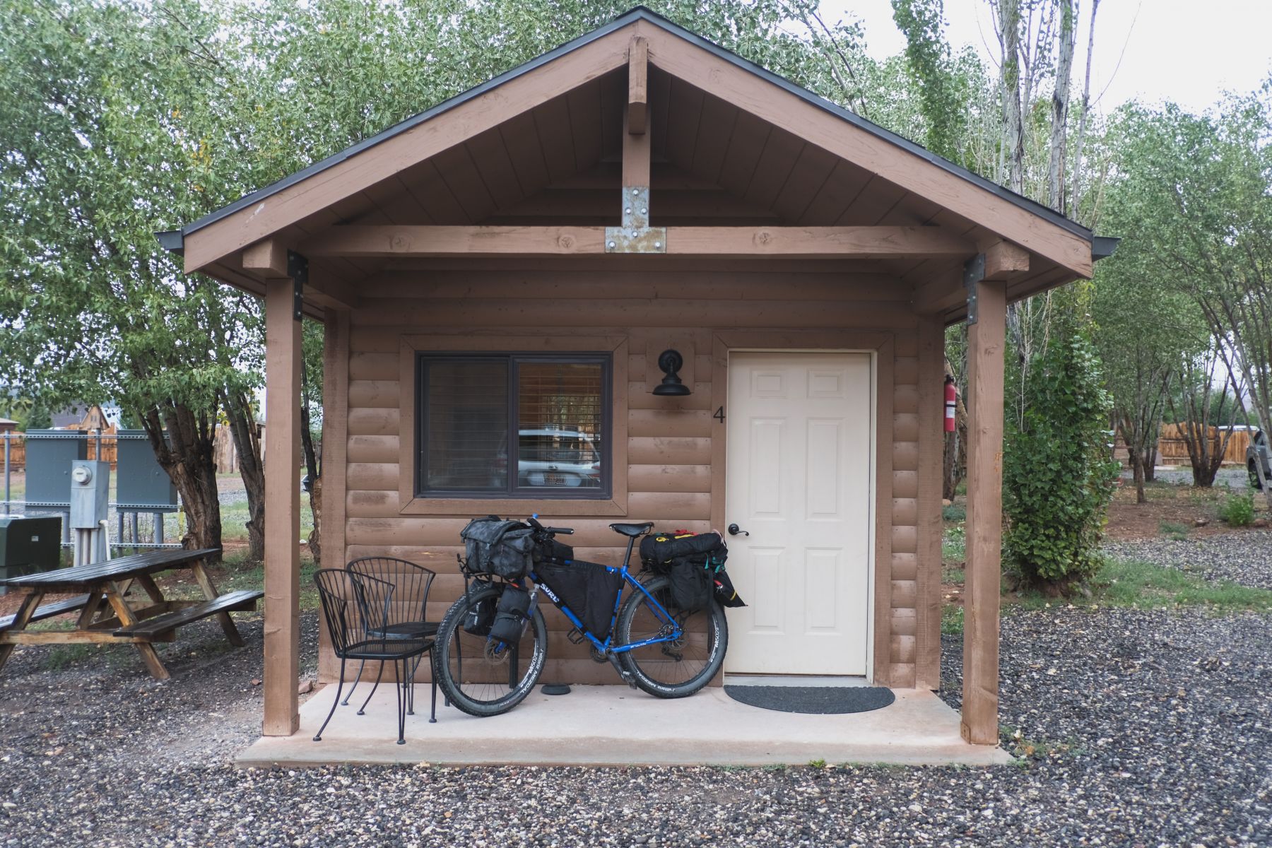 I had made it to Torrey! The forecast had rain all night and I saw a sign for $60 cabins so I decided to treat myself after a few days of climbing and headwinds. I had been biking for about 40 days and only paid for a bed one night before this so I felt it was earned. I budget $25 a day right now in the states but sometimes it’s nice to let loose a little bit.