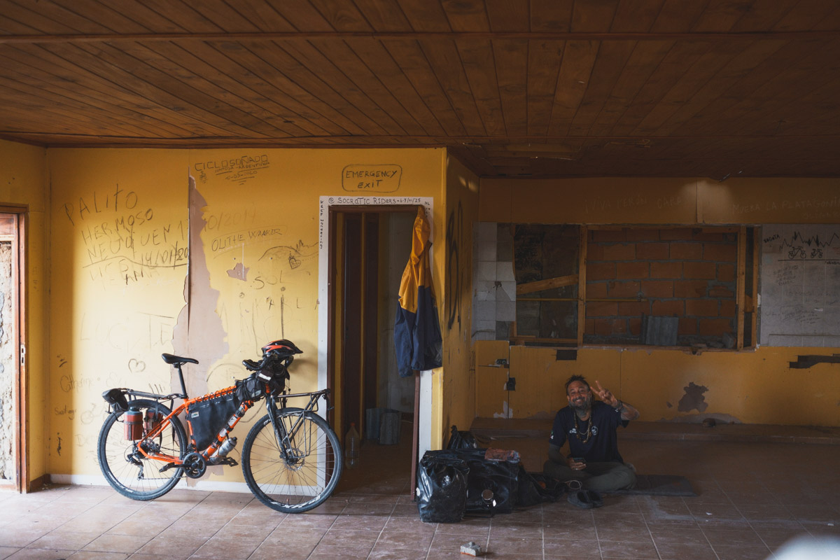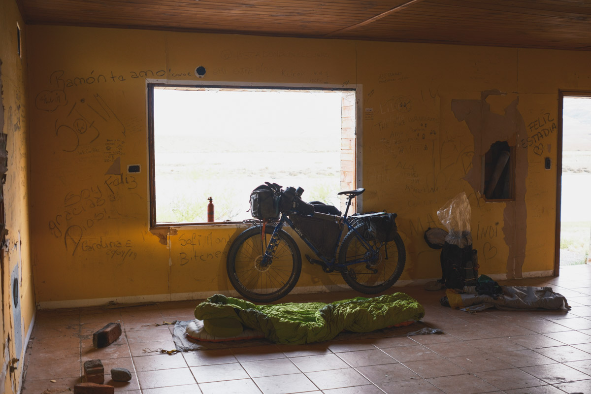 I still had 20km to go to reach my destination, an abandoned police building in the middle of nowhere. For the final 20km, I had to turn away from the tailwind into a crosswind, and it was tough. Gusts of wind would threaten to knock you off the bike, and it was nearly impossible to maintain a straight path. As bad as crosswind was, I’d take it any day over a headwind. This shelter was also full of the names of countless past cyclists, all taking shelter here. It’s a cool feeling, thinking of the history a seemingly simple building can have.