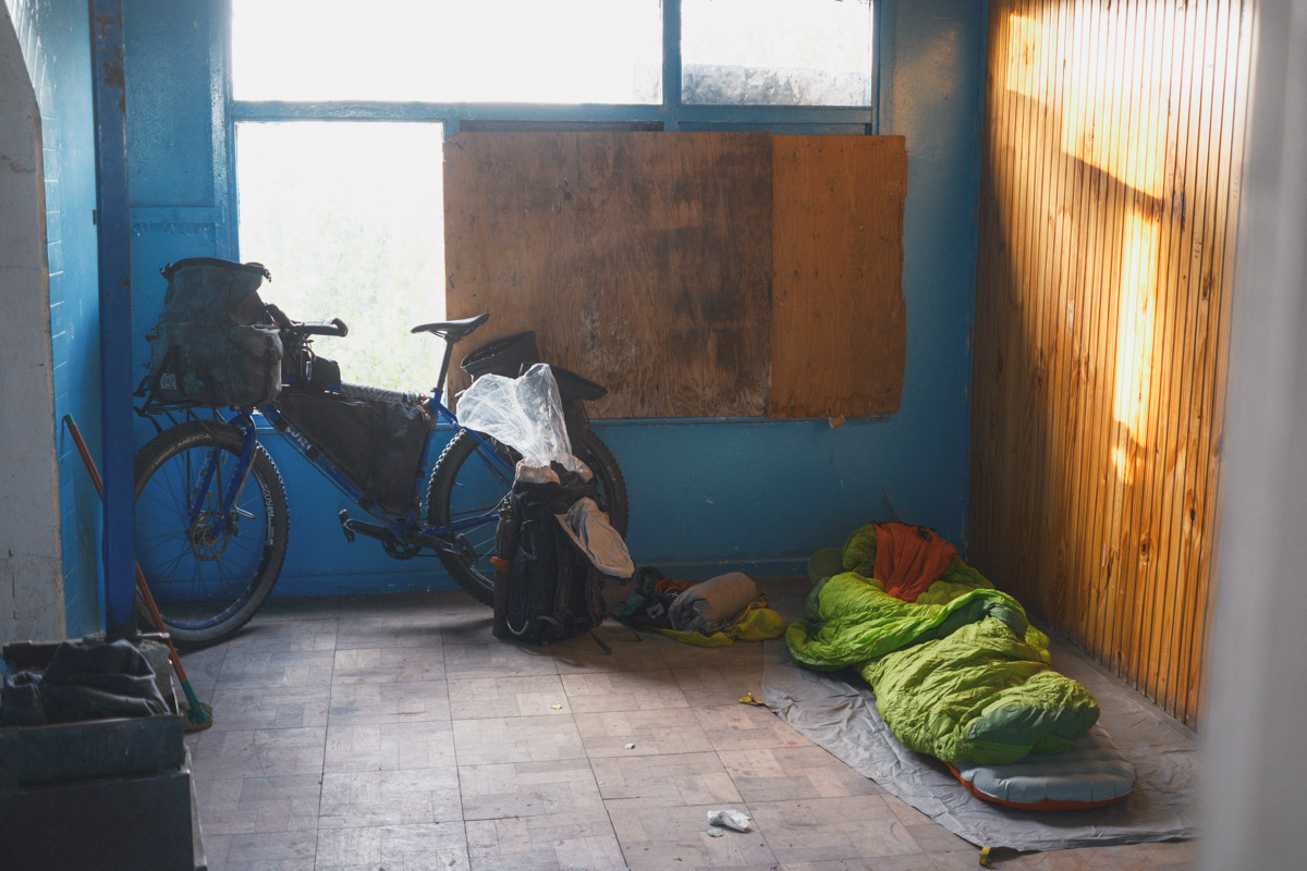 The next morning, I woke up to my alarm at 5:45 a.m. after a rather sleepless night. The abandoned building wasn’t as abandoned as I thought, and countless mice ran around, keeping me up. I don’t like waking up this early to bike, but it was the only option to avoid a terrible headwind in the afternoon.