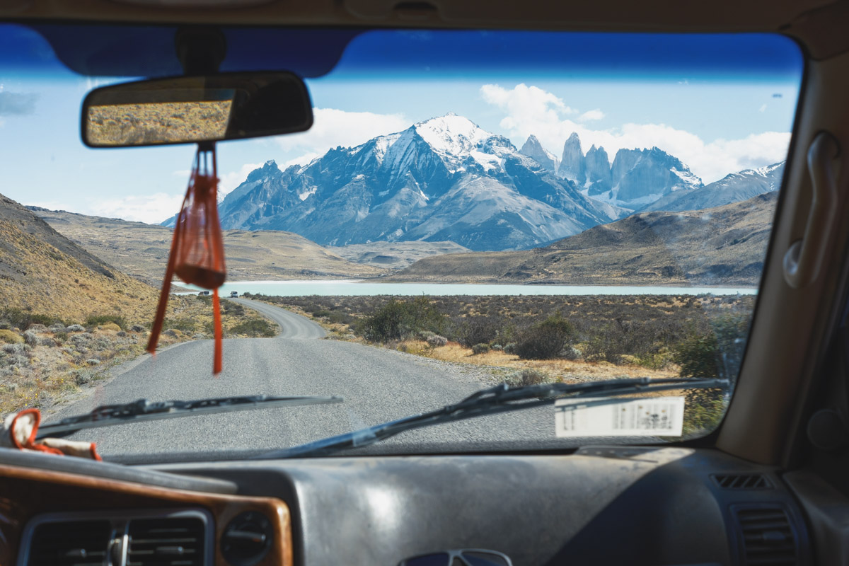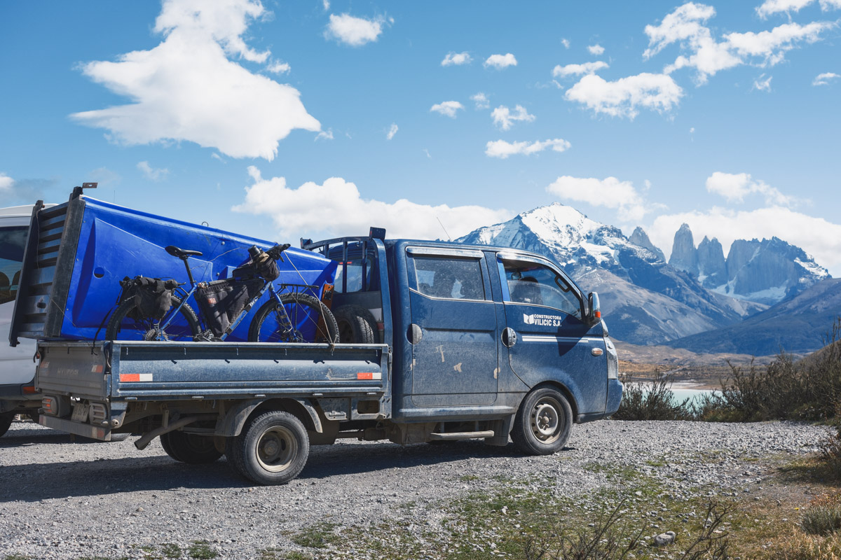 Back on my own, I only made it a few kilometers further till I decided enough was enough. At this rate, it would take me all day to pedal the final 30km. Sometimes, it’s just not worth it, and hitchhiking is the answer. Very quickly, I found a ride from two Chileans who worked in the park. As I was approaching the park and the mountains came into view, I was stunned. My initial impression from far away was entirely wrong, and the closer I got to the mountain range, the more magnificent they got. A great benifit with riding with workers, was that we got to go past the park entrance without stopping and paying, saving me quite a bit of money.