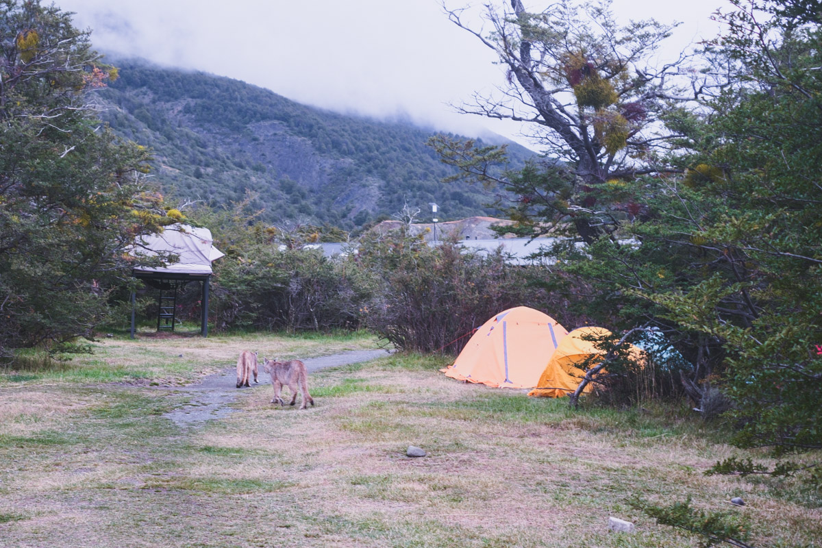 While resting in my tent, I peeked out and noticed a puma entering the campground. I quickly grabbed my camera and got out to try and capture some photos. I had known that they frequent the campgrounds and are uninterested in people, so I didn’t feel in danger approaching the puma to get a good look. They walked right past me, only a few meters away. It was extraordinary, they are beautiful animals.